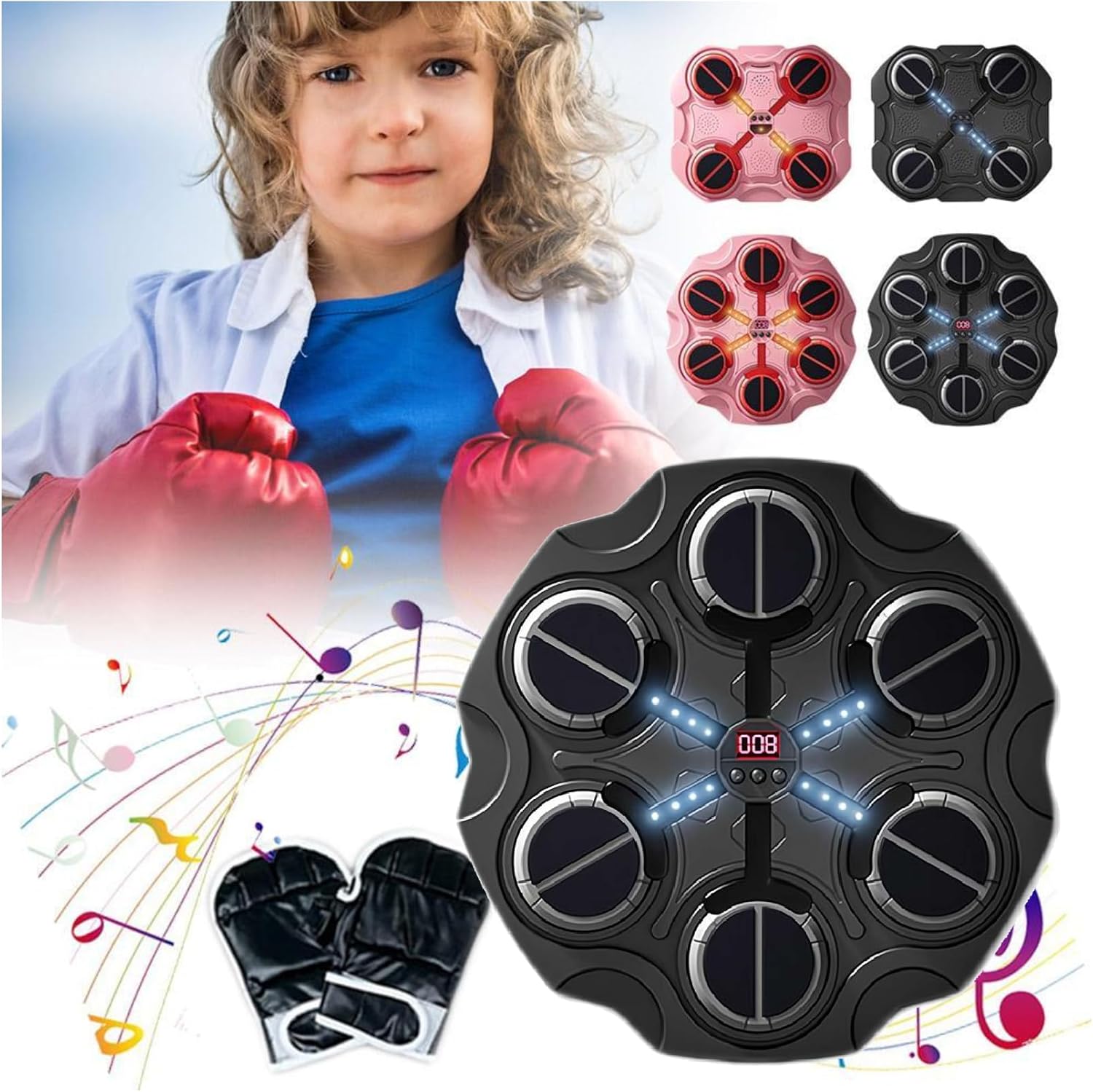2024 New Smart Music Boxing Machine for Kids with Boxing Gloves, Smart Bluetooth Boxing Machine with LED Electronic Wall Mounted, Adjustable Attack Rhythm,Wall Target Training Devices for Boys Girls