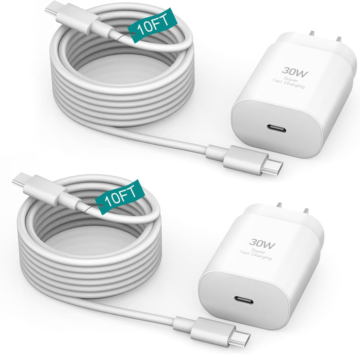 30W USB C iPhone Charger Fast Charging for iPhone 16 15 Pro Max Super Fast Charger Cable Cord 10FT 2Pack for iPhone16/16 Pro Max/15/15 Pro Max/Plus/iPad Pro/Air/Mini 12.9/11 Wall Charger Block