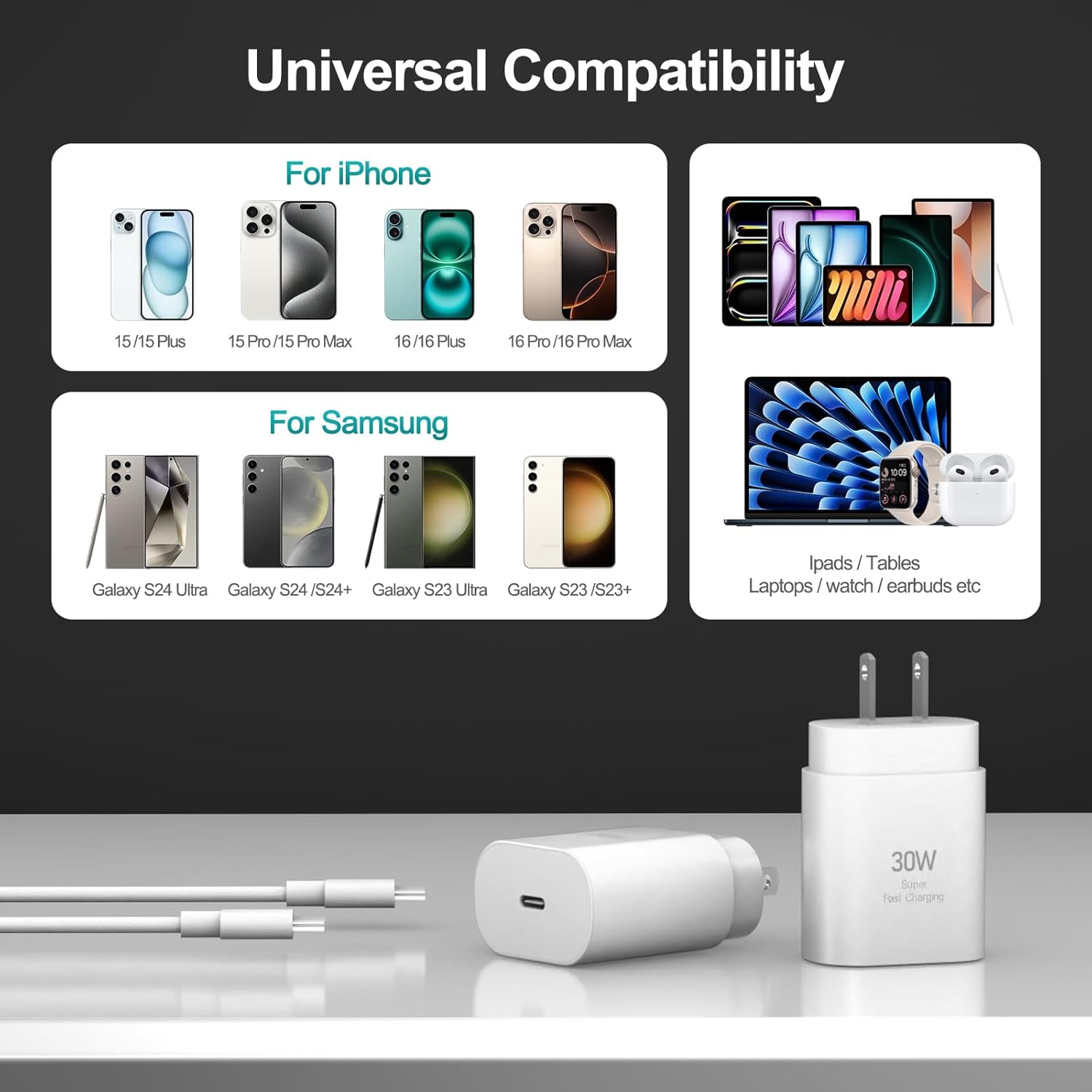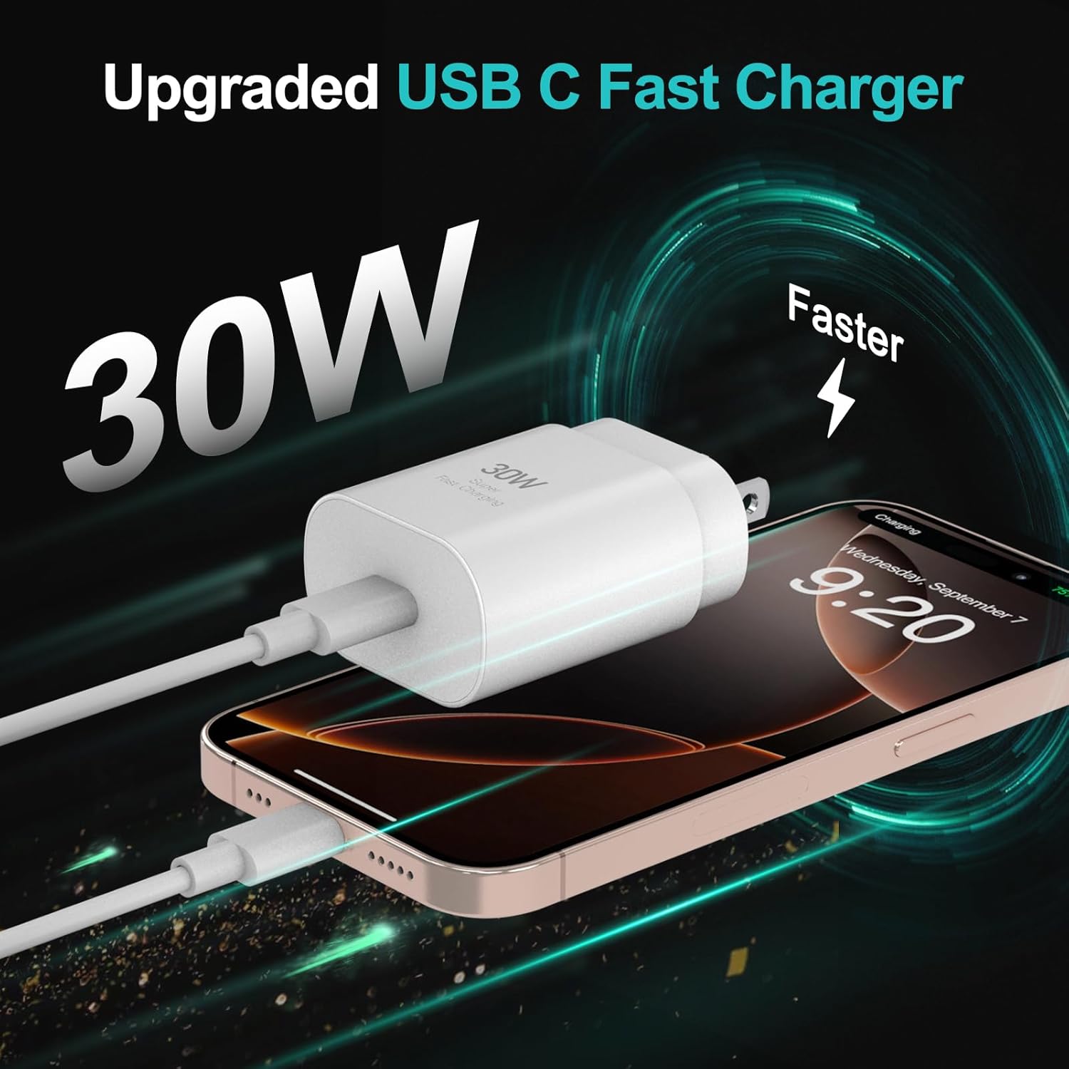 30W USB C for iPhone Charger Fast Charging Cord Safe and Reliable, 30W for iPad Pro/Air/Mini Fast Charger Block USB C has multiple safety protection system to protect your iPhone 16/ iPhone 16 Plus/ iPhone 16 Pro/ iPhone 16 Pro Max/ iPhone 15/ iPhone 15 Plus/ iPhone 15 Pro Max/Air/Mini from overcurrent, overvoltage, short circuit and overheating to ensure the safety and longevity of charging your device. iPhone 15 Pro/ iPhone 15 Pro Max from over-current, over-voltage, short-circuit and overheating, ensuring the safety and longevity of charging your device.