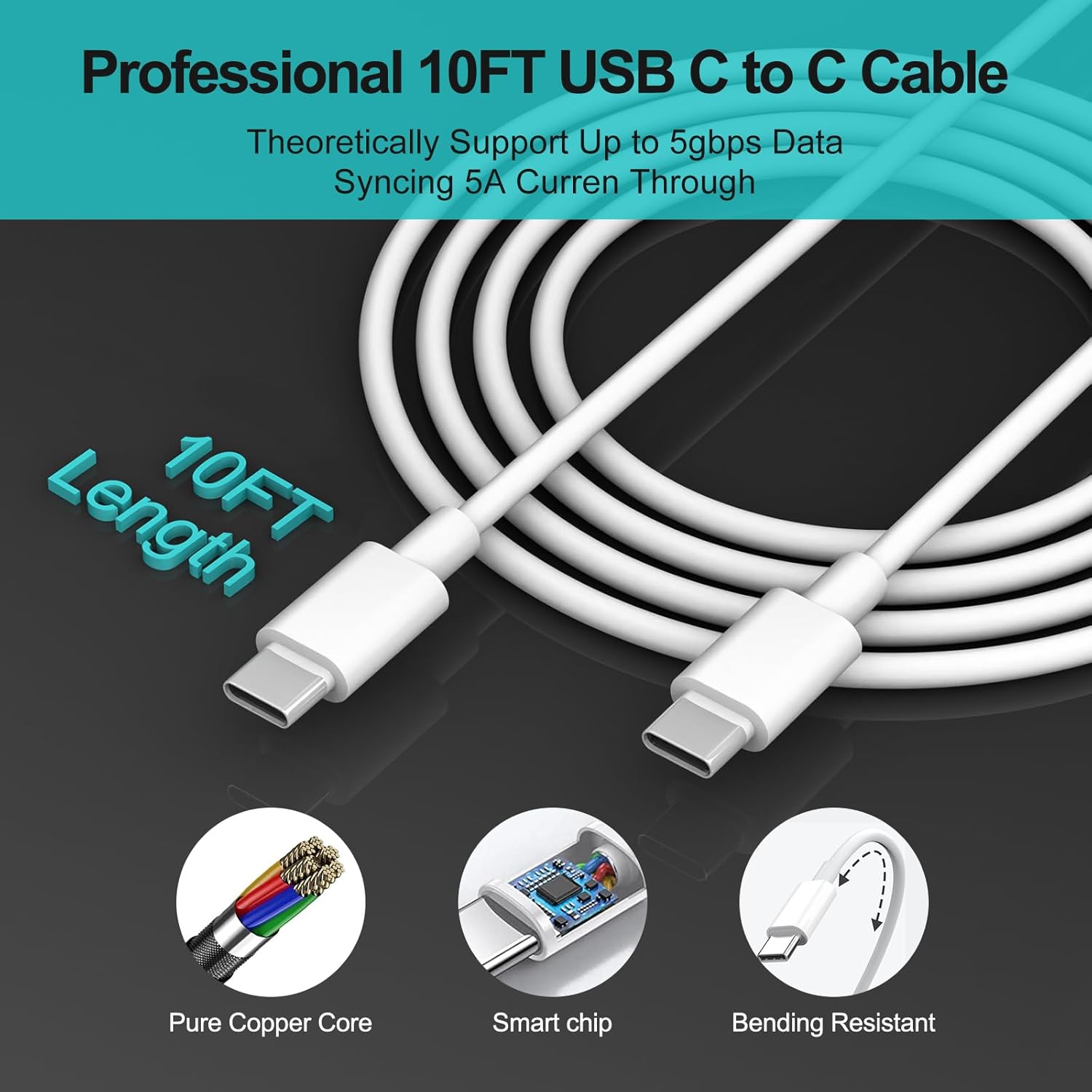 【 iPhone 16 15 Wall Charger Cord Tybe c Compatibility】 10FT Tybe c to Tybe c Fast Charging cord compatible iPhone 16/ iPhone 16 Plus/ iPhone 16 Pro/ iPhone 16 Pro Max/iPhone 15/ iPhone 15 Plus/ iPhone 15 Pro/ iPhone 15 Pro Max,Pro with macbook Series is perfectly compatible: iPad Pro 11/13 inches 2024, iPad Pro 12.9 inches 6th/5th/4th/3rd gen, iPad Pro 11 inches 4th/3rd/2nd/1st gen,iPad Air 6/5/4 gen, iPad 10th gen, iPad Mini 6th gen, AirPods Pro (2nd Generation)Pixel 7, Pixel 7 Pro, Pixel 7a, Pixel 6, Pixel 6 Pro, Pixel 6a, Pixel 5, Pixel 5a, Pixel 4, Pixel 4 XL, Pixel 3, Pixel 3A, Pixel 3 XL, Pixel 2, Pixel 2XL