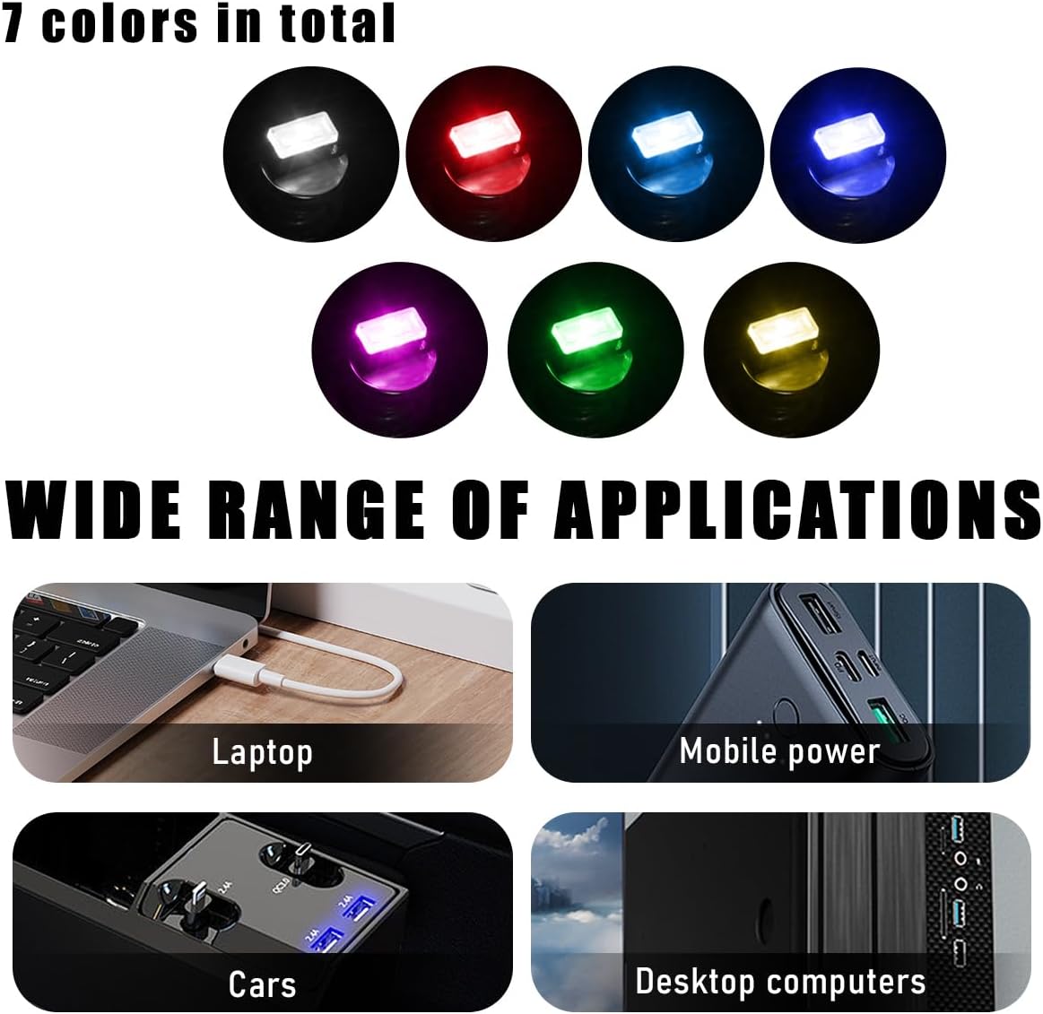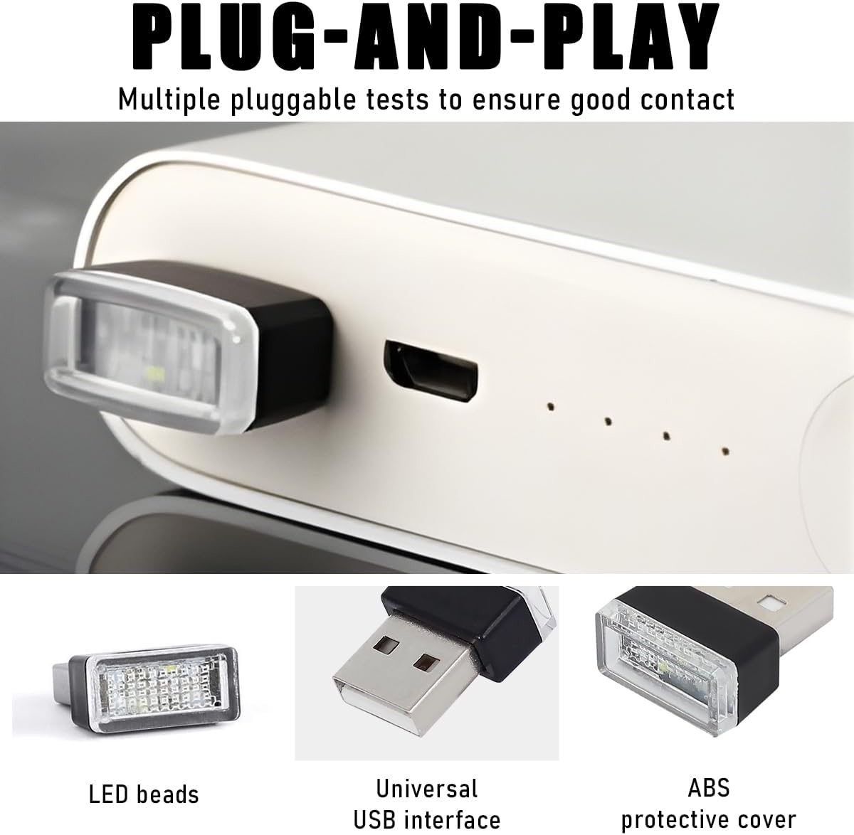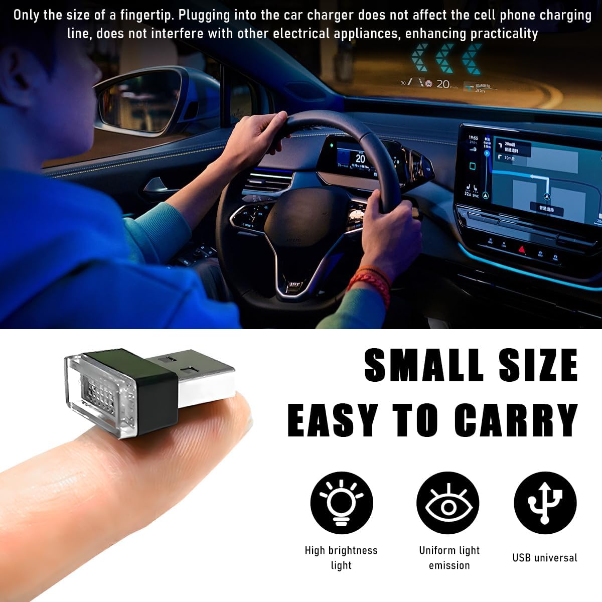【Compact & Portable】: Measuring 0.8″ in height, 0.6″ in length, and 0.3″ in width, with a USB plug thickness of 0.2″, these lights fit easily without blocking other functions. They can be plugged into car chargers or USB ports without interfering with phone chargers or other devices.