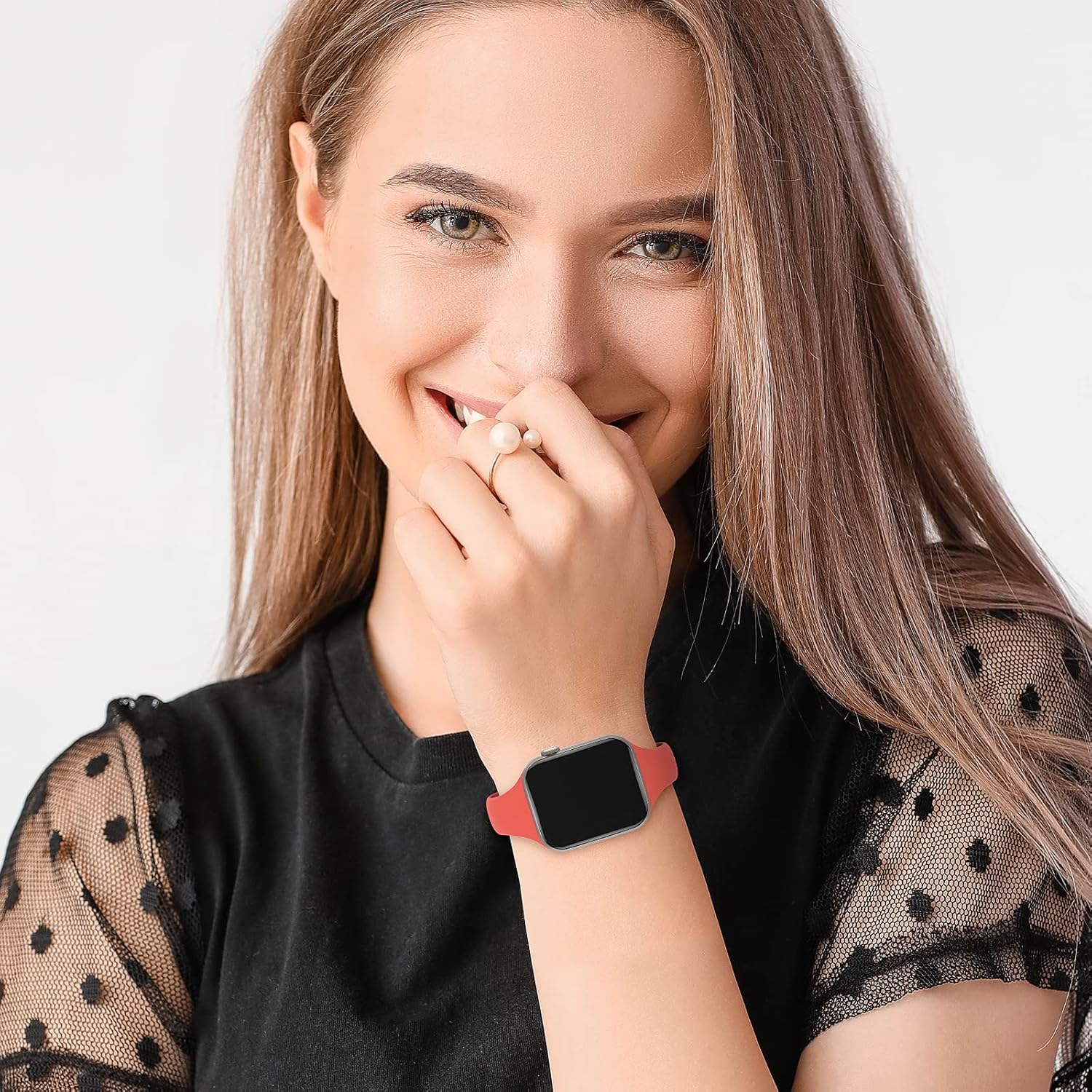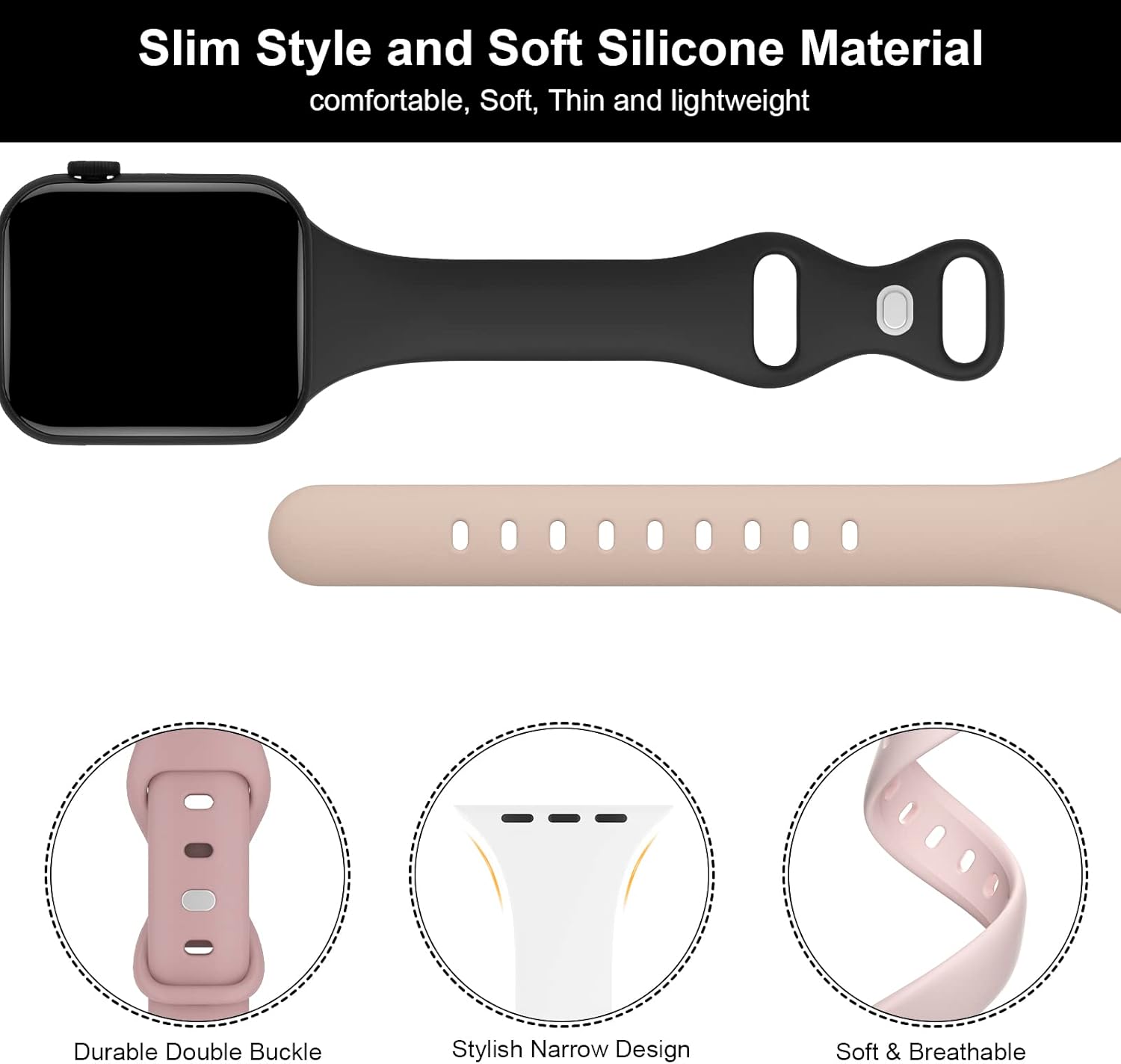 5 Pack Silicone Slim Bands Compatible with Apple Watch Band 38mm 42mm 40mm 44mm 41mm 45mm 46mm 49mm, Soft Narrow Sport Strap Thin Wristband for iWatch Series 10/9/8/7/SE/6/5/4/3/2/1/Ultra Women Men