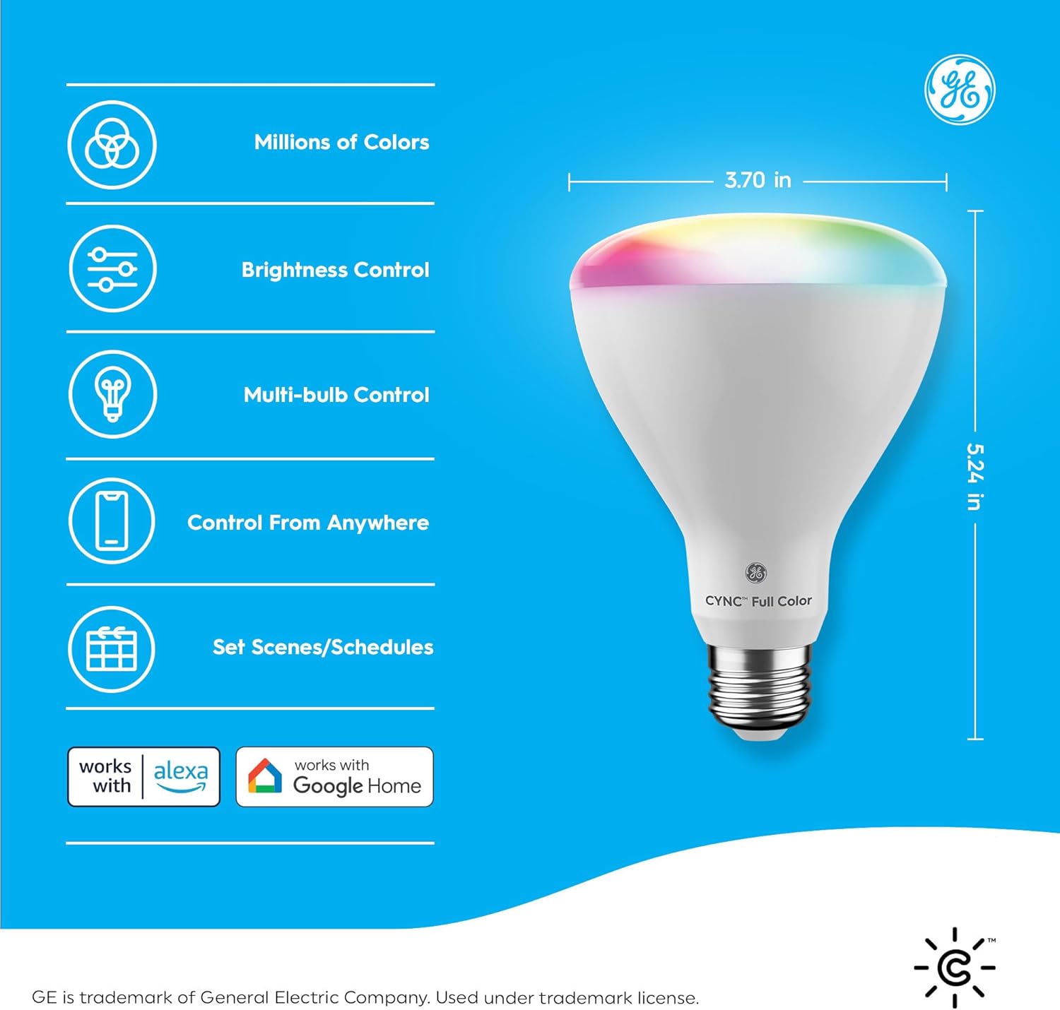 Cync GE BR30 LED Smart Light Bulbs, Indoor Floodlight Bulb, Color Changing Light Bulb, WiFi Lights, Works with Amazon Alexa and Google Assistant, 9.5 Watts (2 Pack)