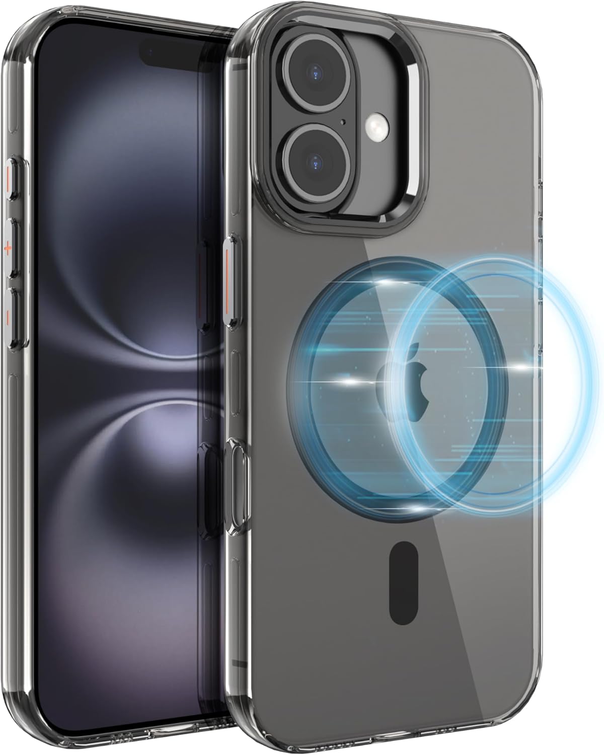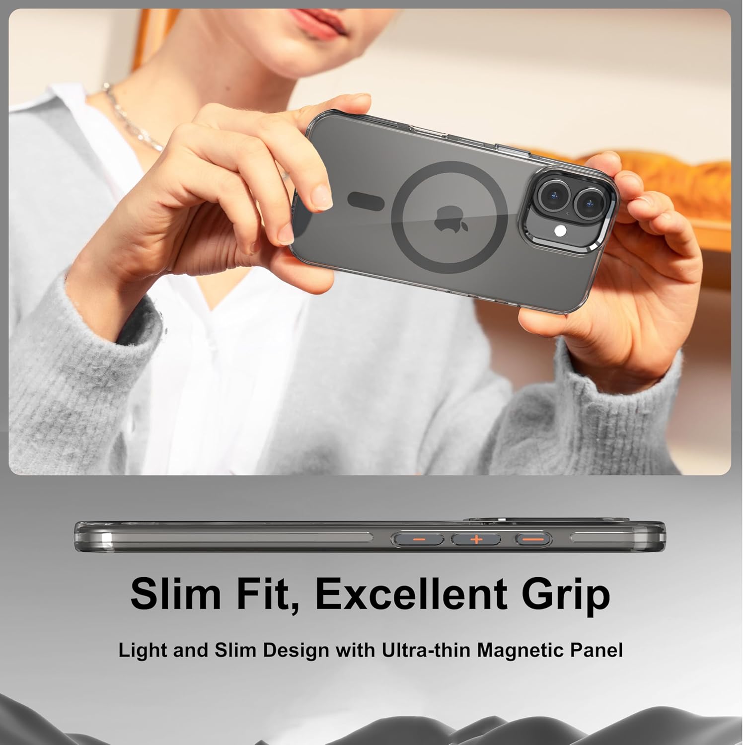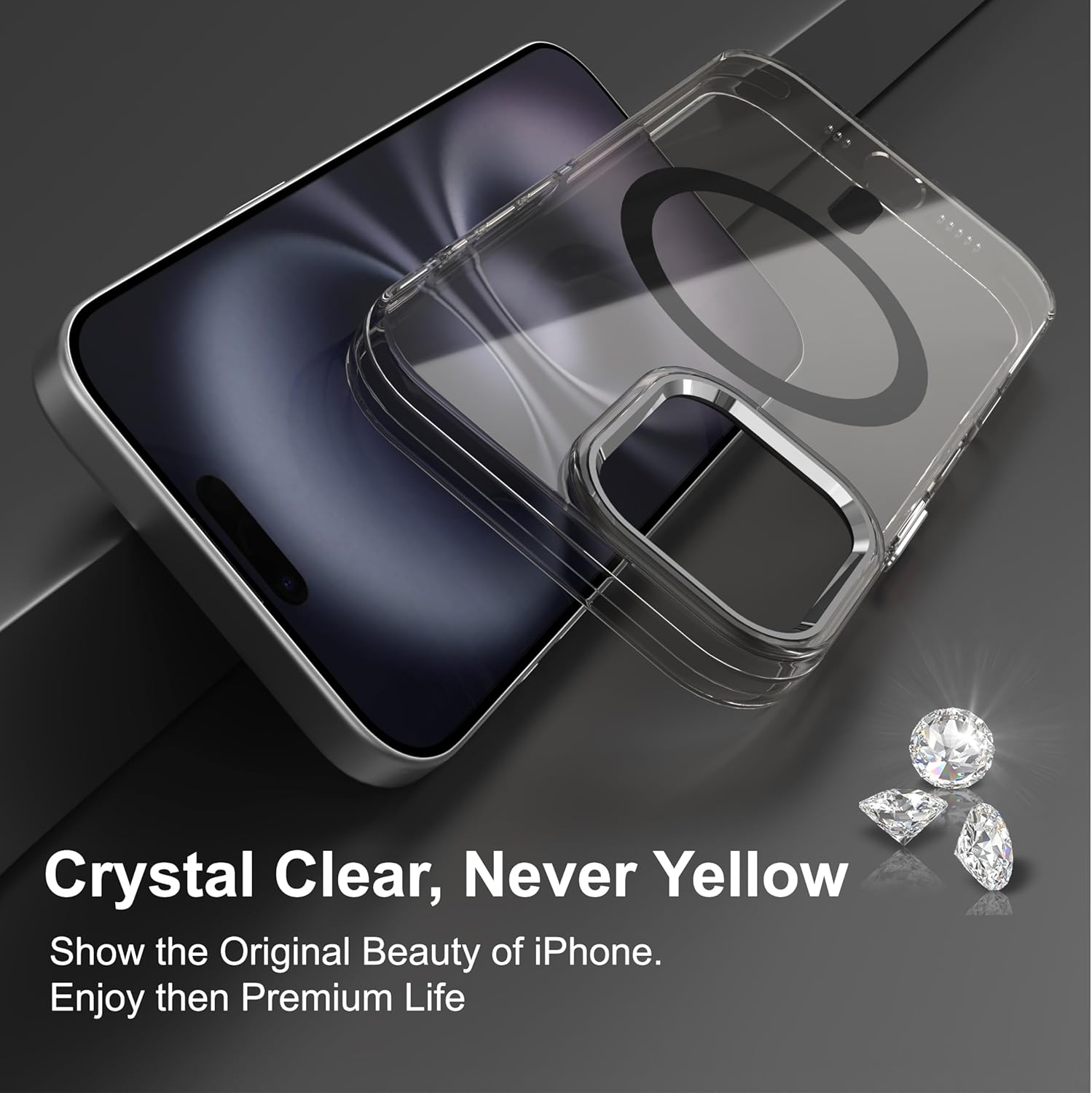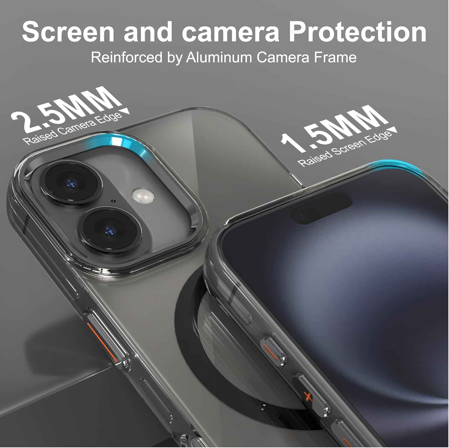Designed for iPhone 16 Case, Compatible with MagSafe, Clear Slim Phone Case with Aluminum Alloy Camera Frame, Anti-Yellowing, Metal Buttons, All-Round Protection with Airbag Corners, Black