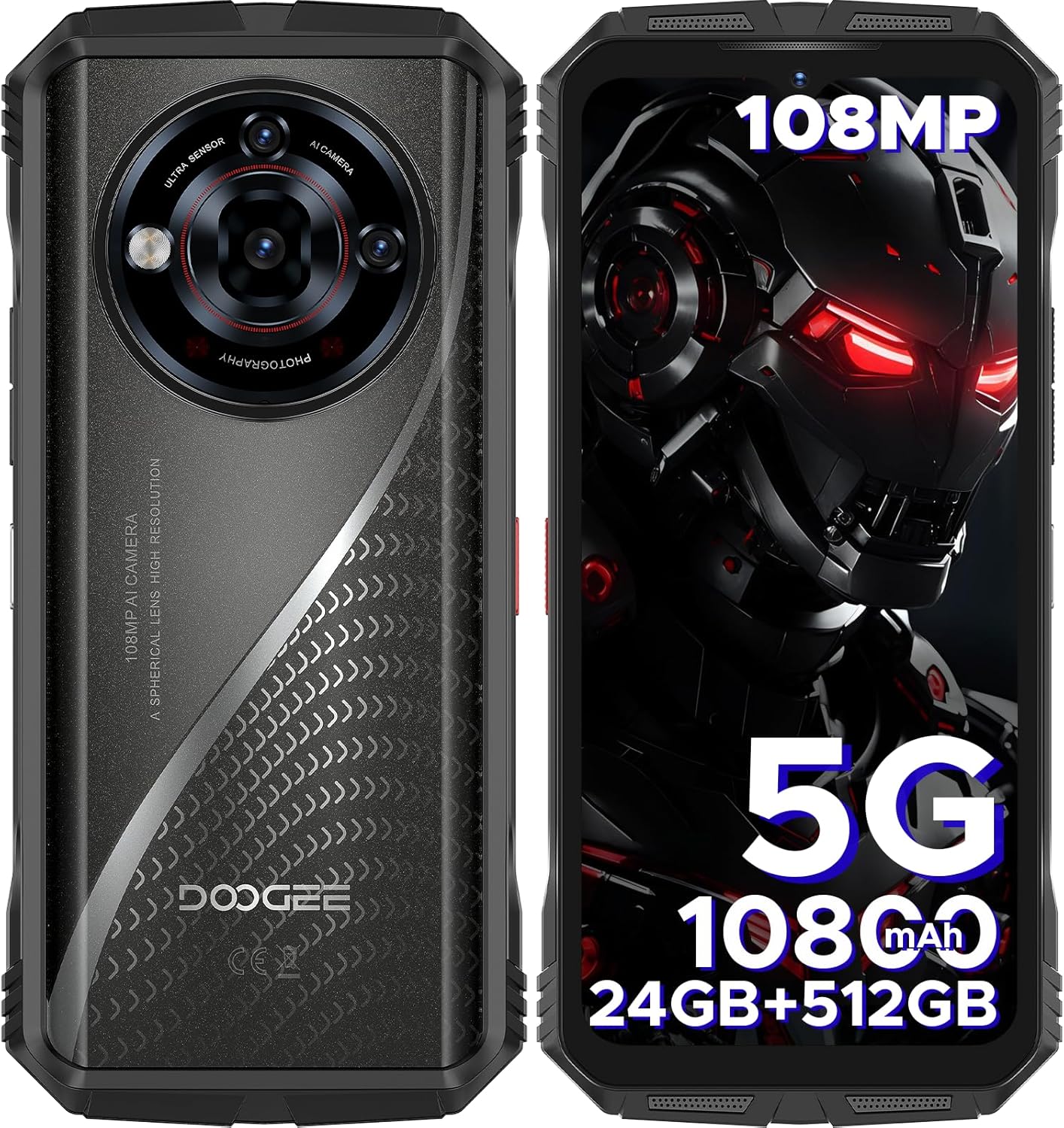 DOOGEE S118 Pro (2025) Rugged Smartphone 5G,10800mAh(33W) 24GB+512GB/2TB Rugged Phone,DDR5,108MP+20MP Night Vision,6.6”FHD+120Hz Rugged Unlocked Cell Phone,Dual SIM/Dual Unlock/NFC/GPS/OTG/WiFi 6