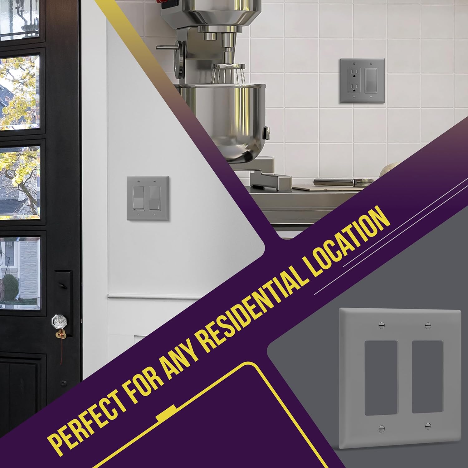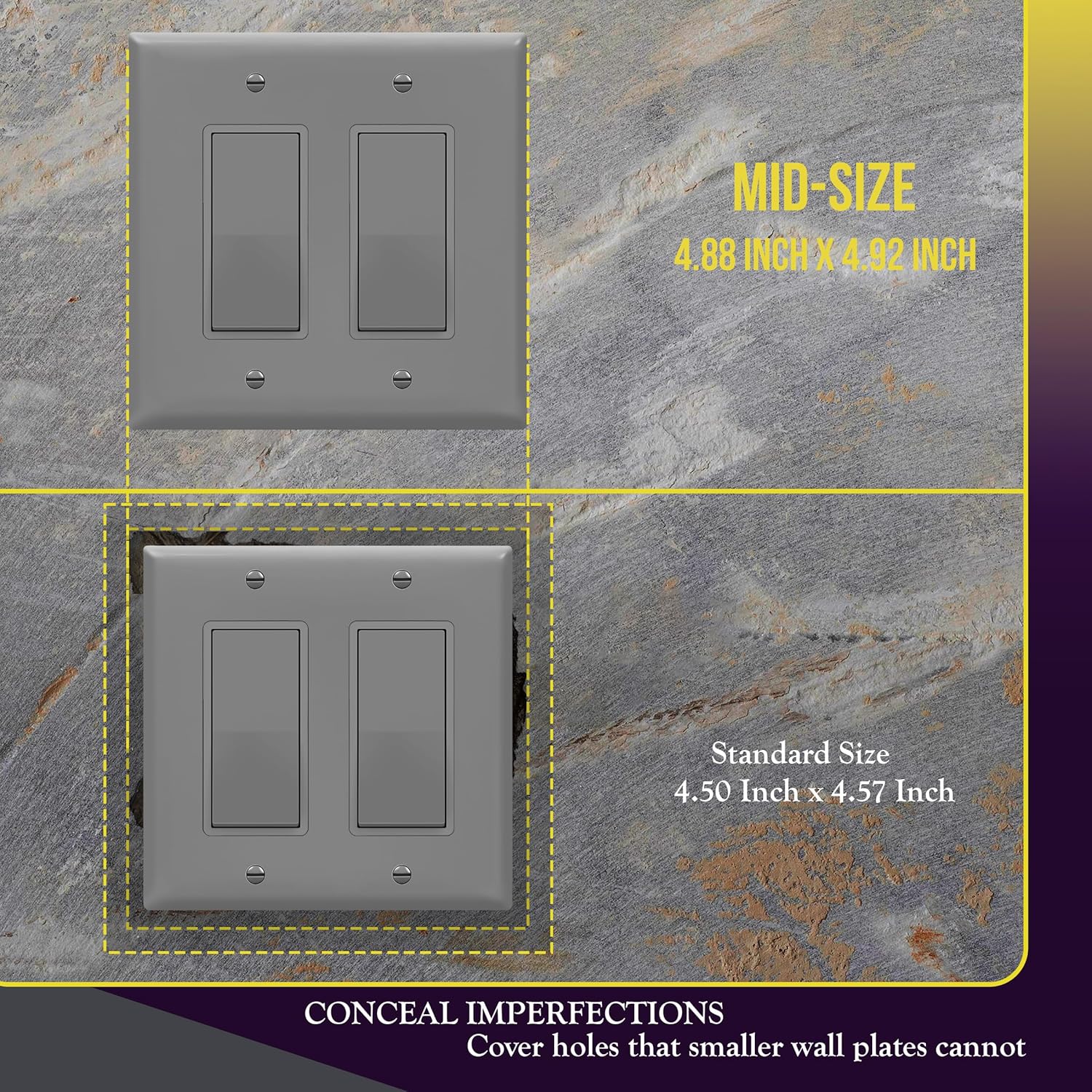 ENERLITES Double Decorator Switch Cover, Two Outlet Wall Plate, Mid-Size 2-Gang 4.88″ x 4.92″, Unbreakable Polycarbonate Thermoplastic, UL Listed, 8832M-GY, Gray