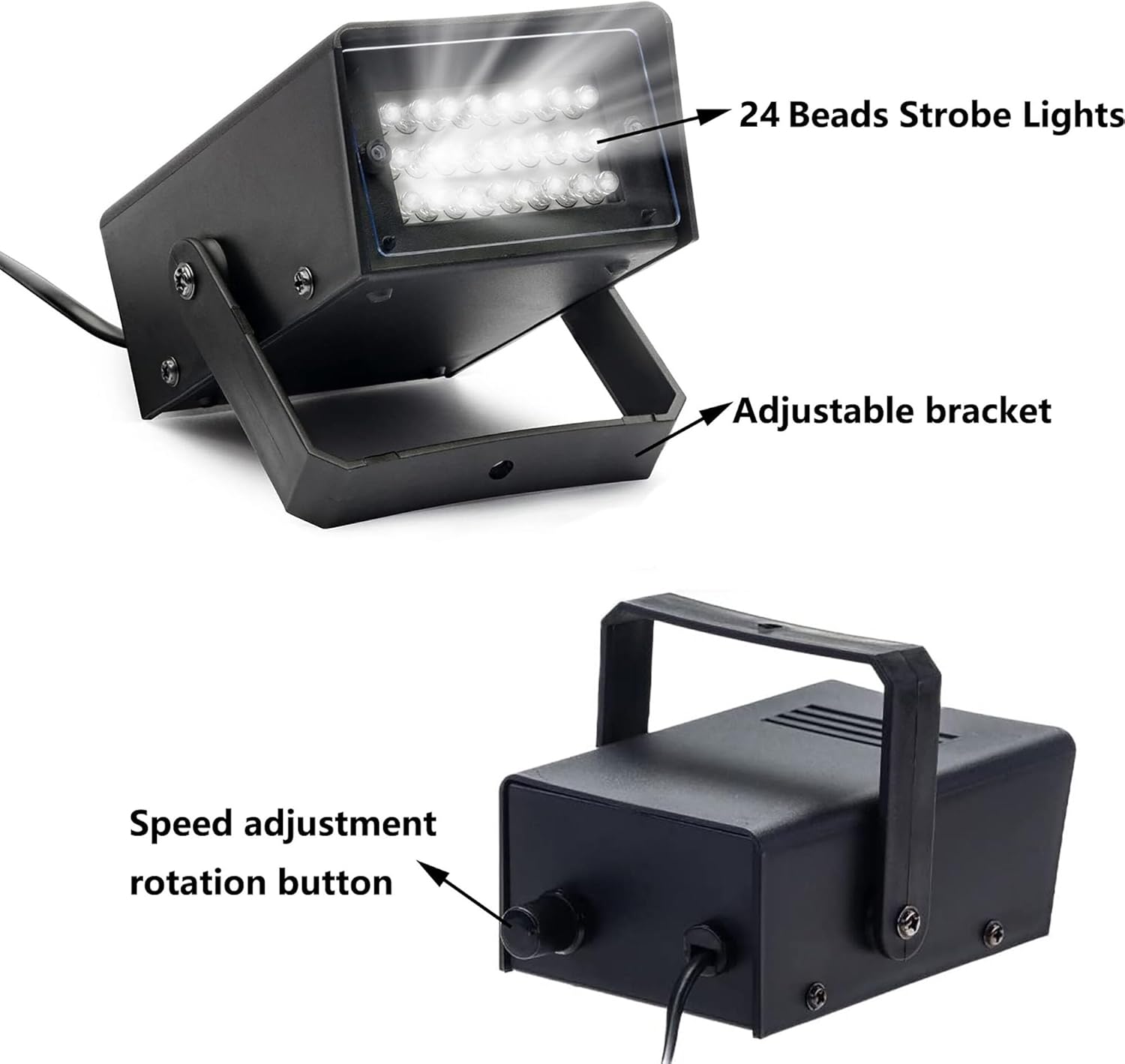 ENUOLI Mini LED Strobe Light White Color with 24 Super Bright LED Variable Speed Control for Christmas Clubs Stage Light Effect DJ Disco Bars Parties Halloween (White Color)