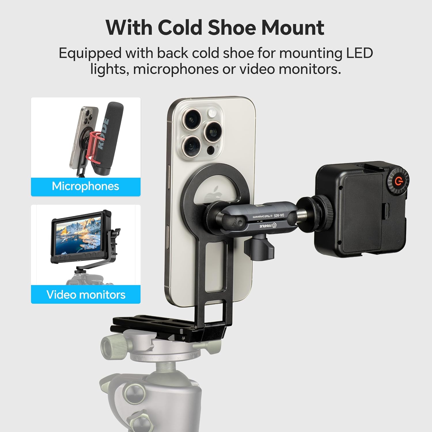 FANAUE Adjustable Phone Tripod Stand, Foldable Magnetic Cell Phone Holder with Arca-Swiss and 1/4″ Screw Hole, Aluminium Magsafe Smartphone Mount with Cold Shoe for iphone16 15 14 13 12 Plus Pro Max