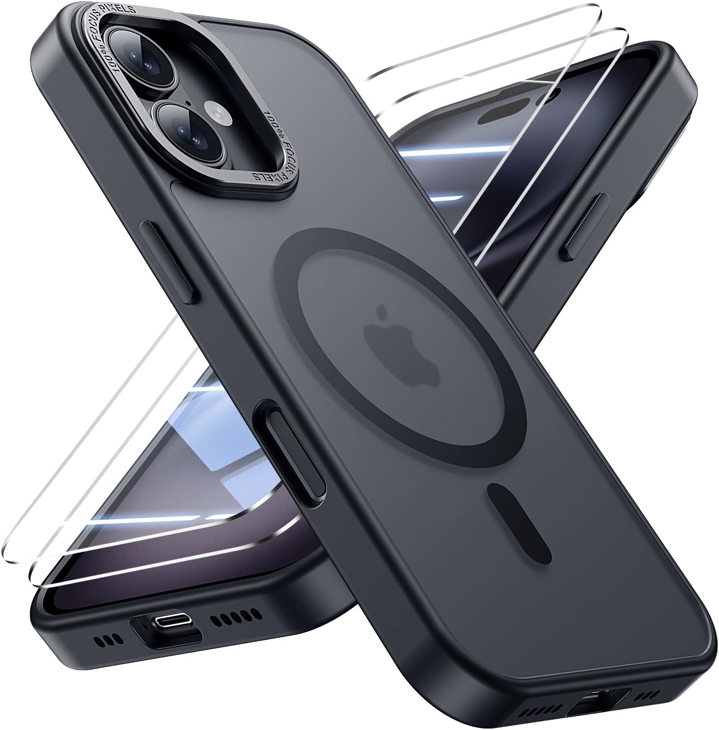 for iPhone 16 Case with 2X Screen Protectors [Compatible with MagSafe] Military Grade Drop Protection Skin Feeling Back Cover Shockproof Slim Fit iPhone 16 Phone Case 6.1 inch,Black