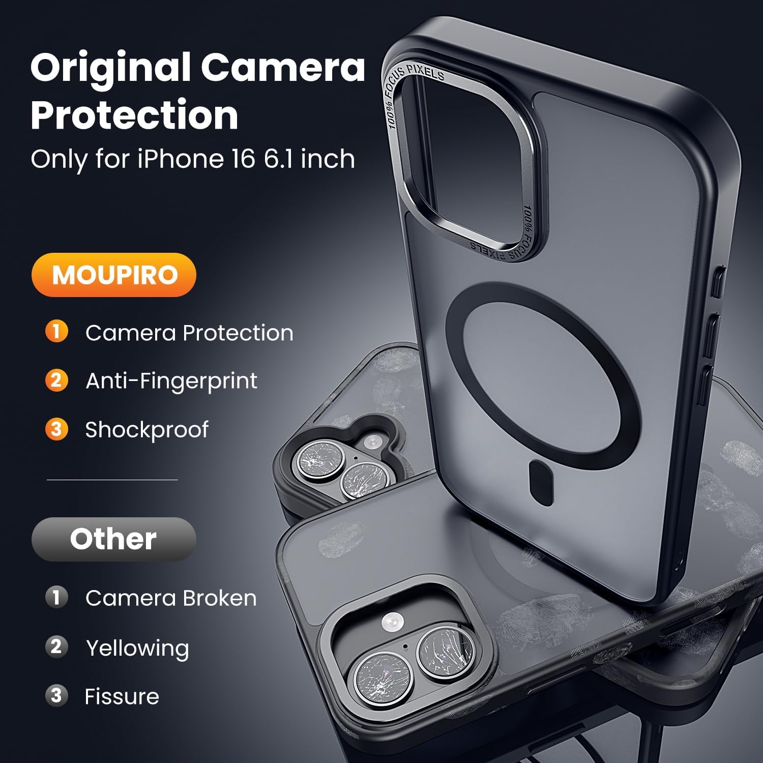 【Slim & Skin-Friendly Touch】Moupiro’s iPhone 16 Matte Case features a premium matte translucent protective case with a upgrade Nano-Oleophobic coating ensuring the case has a silky feel and is not sticky. The case maintains a slim profile, ensuring that your phone remains sleek and comfortable to hold.