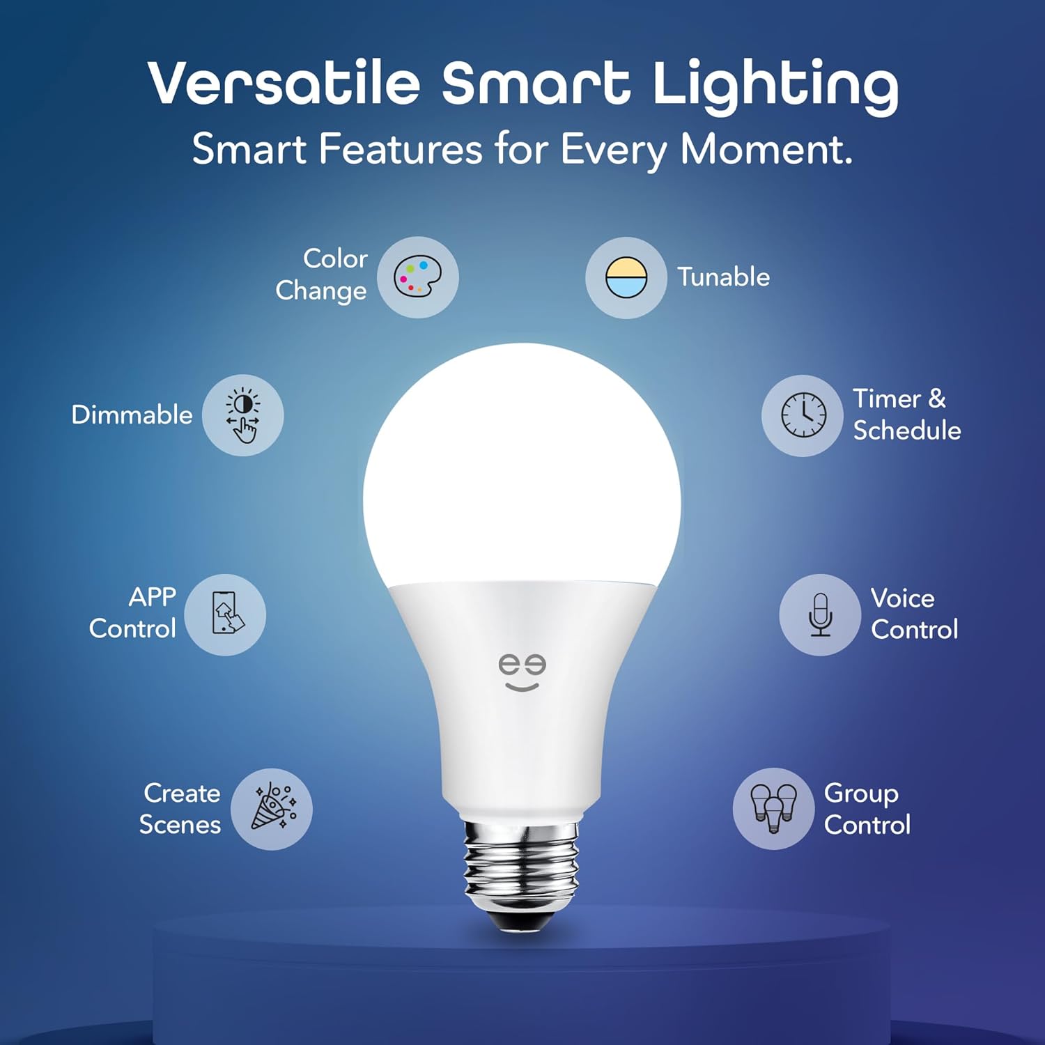 Customizable Scheduling: Automate your lighting with timers, scenes, and group control, allowing you to sync multiple bulbs or schedule gradual dimming for nighttime relaxation.