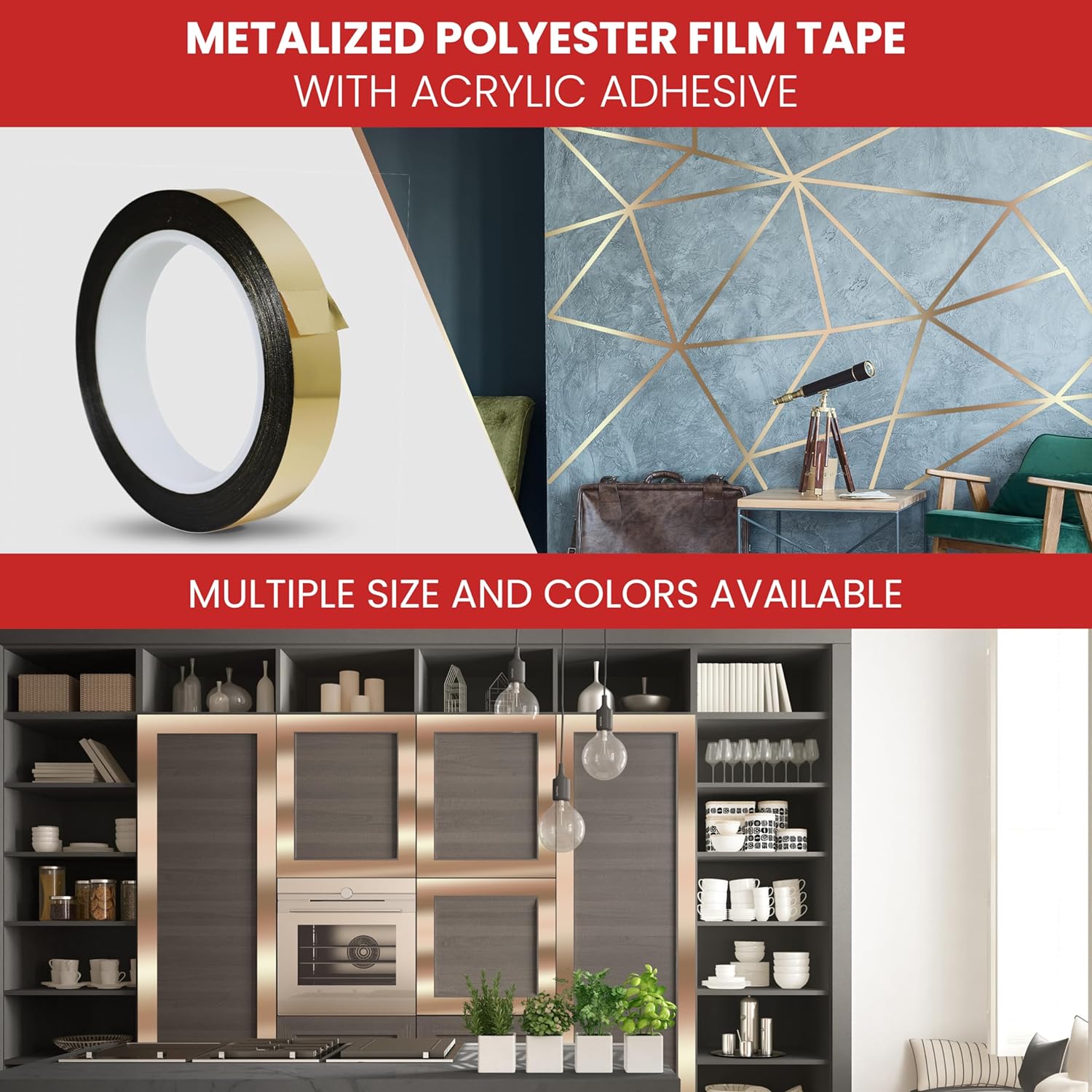 GGR Supplies T.R.U. MMYP-1 Metalized Polyester Film Tapes with Acrylic Adhesive. Multiple Colors Available. 72 Yards. (Gold, 3 in.)