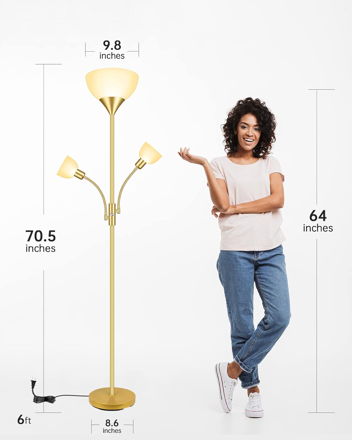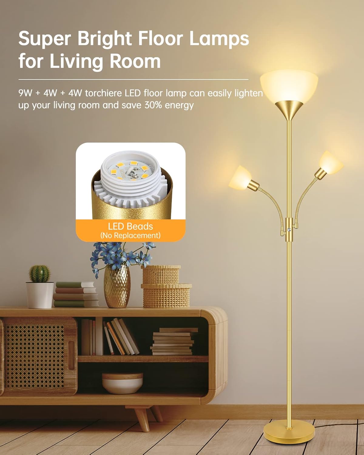BoostArea 9W+4W+4W LED Gold Torchiere Floor Lamps for Livng Room/Bedroom/Office – Bright Up Your Home, Decor Your Life!