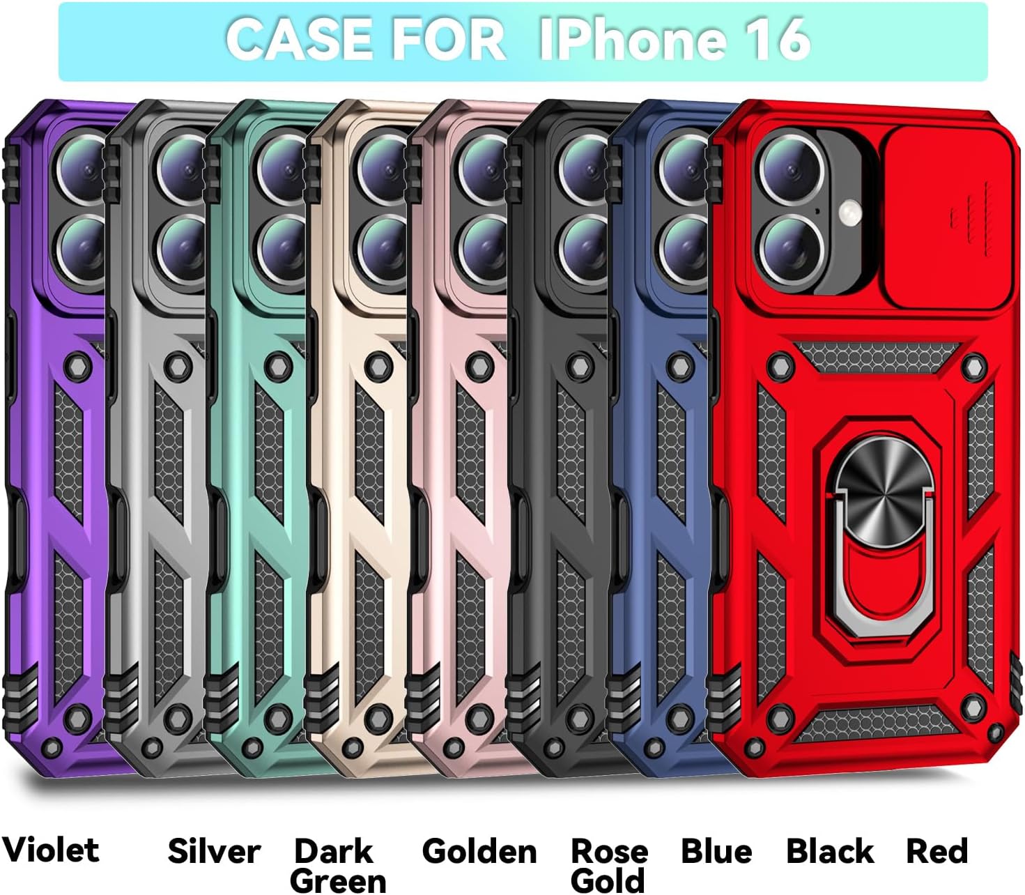 ЁЯМЯCase with Camera Cover & Kickstand, Slide Lens Protection + 360┬░ Rotate Ring Stand, Impact-Resistant, Shockproof, Protective Bumper,iPhone 16 6.1 inch