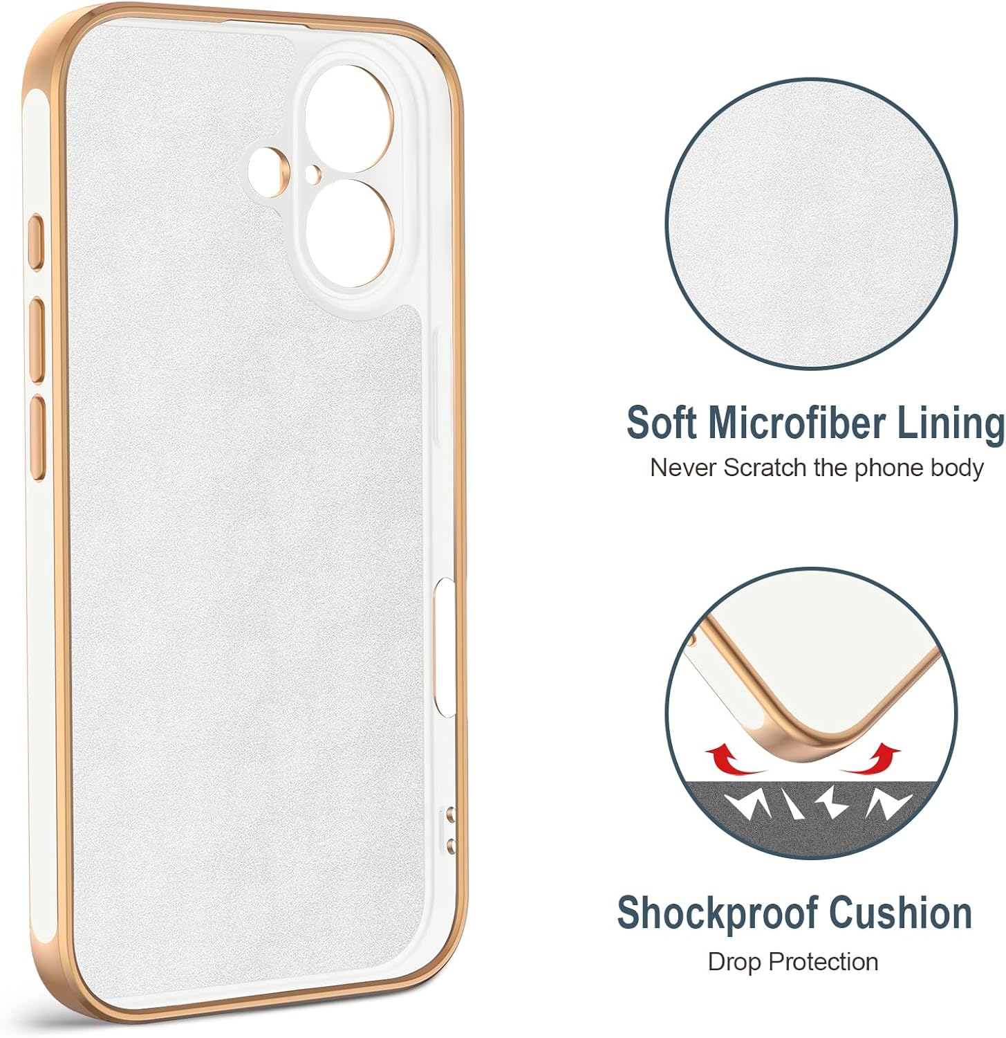 PLATED EDGE & SLIM FIT: The shiny rose gold plating edge bumper design makes your phone elegant and gorgeous. This luxury case for iPhone 16 is made of high quality flexible soft TPU that will be lightweight, not bulky, scratch-resistant, anti-fingerprint and non-slip. The inside has soft microfiber lining to protect your phone from scratches