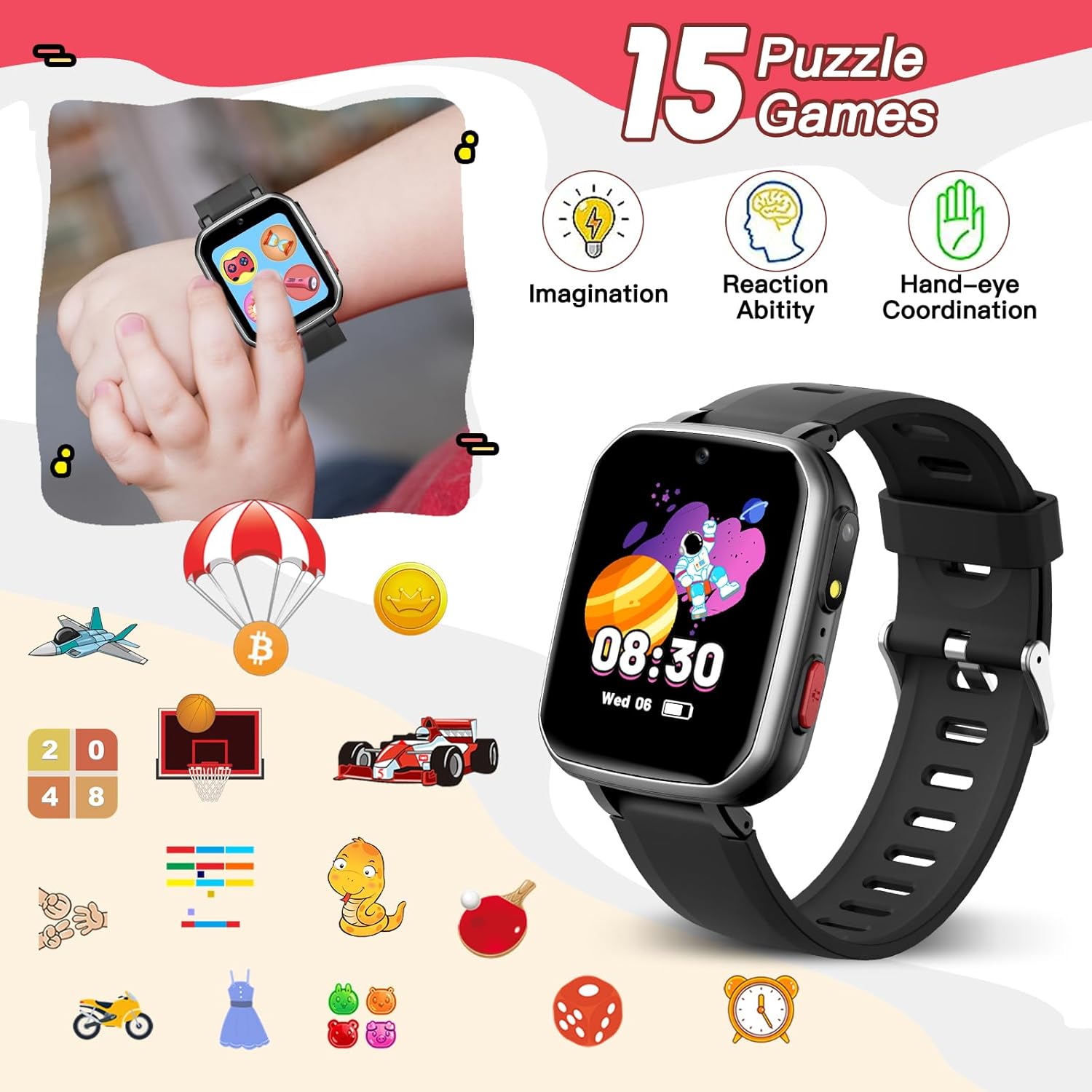 Upgrade Kids Watch : As the latest upgraded kids smartwatch, 15 games are available for children to choose from. These games are easier to play and are suitable for children of multiple age groups. It can effectively exercise children’s logical thinking ability and reaction ability. This is the perfect gift for boys and girls aged 6-12. There are habits tracking and parental control functions that traditional watches do not have