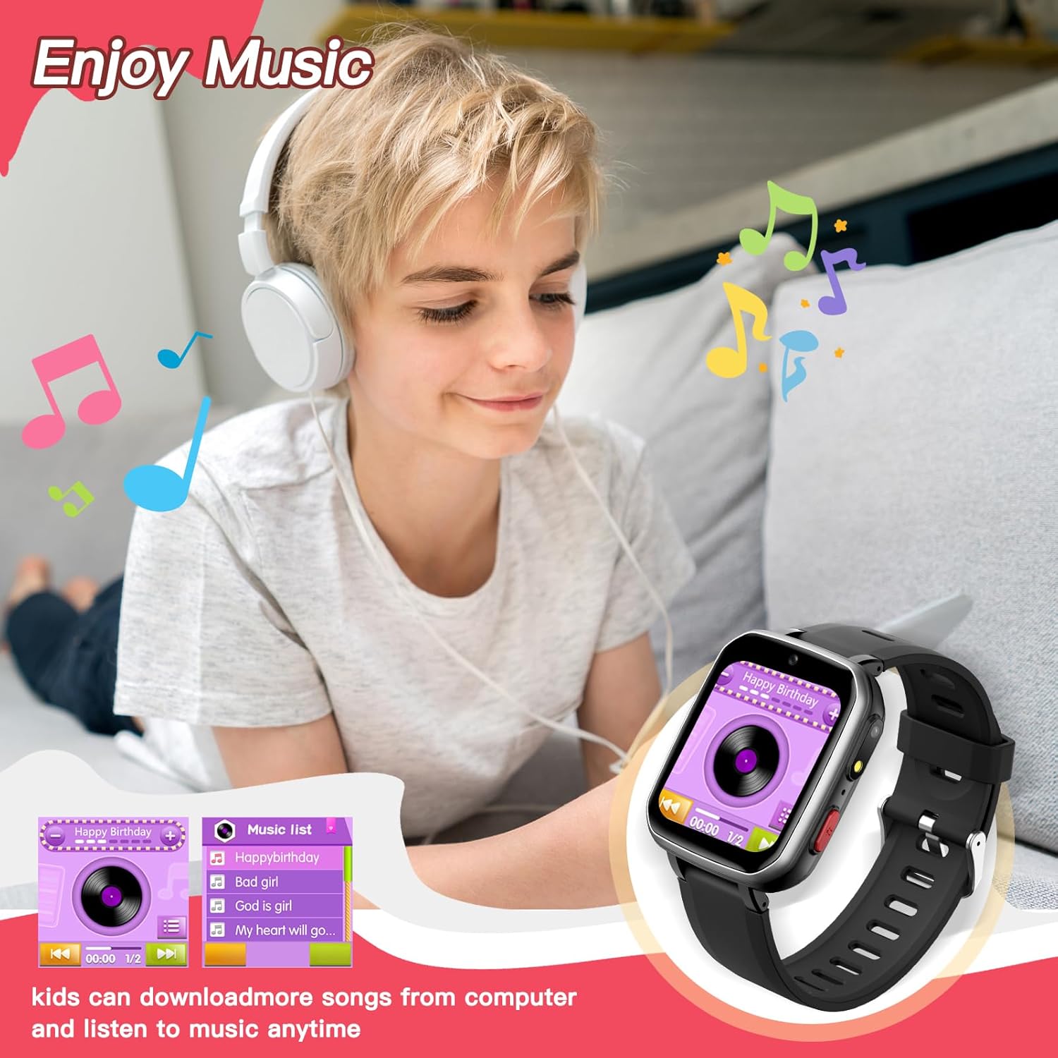 High Definition Selfie camera and video: Kids touch screen smartwatch not only supports cameras and videos, but also has high definition pixels. Children can take photos and record videos to capture and record every exciting moment in their lives. Diversified photo shoots with large stickers, allowing children to take some funny photos with family or friends