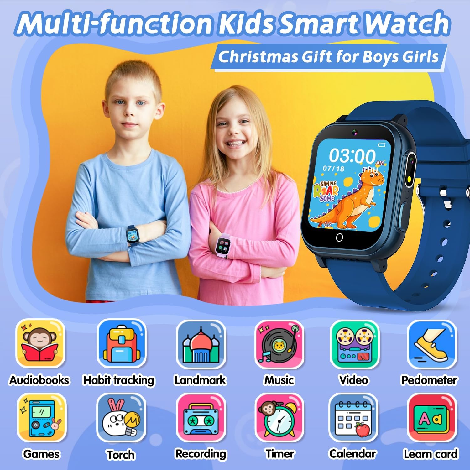 Kids Waterproof Smart Watch with 32 Games Dual Camera Music Player Pedometer Habit Tracking HD Screen Protectors Lanyard Flashlight Storybook, Smart Watch for Kid Birthday Gifts for 5-12 Year Olds Boy