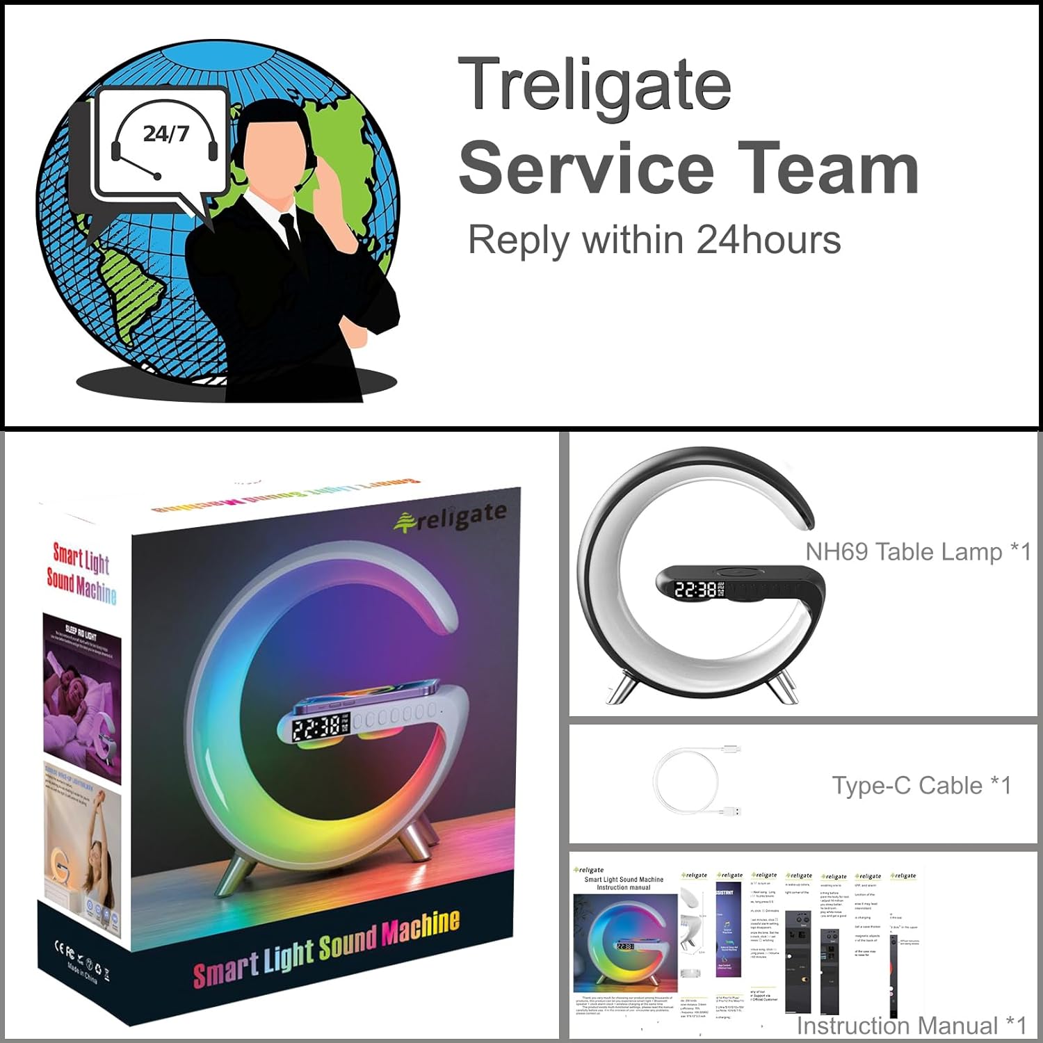 Treligate Smart Table lamp with Wireless Charger, Alarm Clock, Bluetooth Speaker