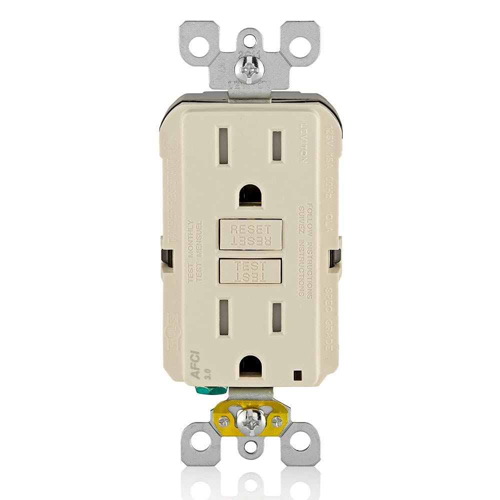 Leviton AFCI Outlet, 15 Amp, Self Test, Tamper-Resistant with LED Indicator Light, Protection from Electrical Fires, AFTR1-T, Light Almond