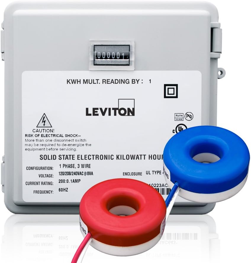 Leviton MO240-2SW Outdoor Surface Mount Mechanical Counter 120/208/240V 2P3W 200A with 2 Solid Core CTs Mini Meter Kit