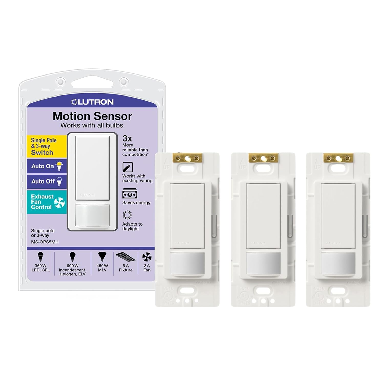 Lutron MS-OPS5M-WH-3 Maestro Motion Light Switch for Bathroom, Garage, Laundry Room, and Closet, for Any Bulbs, Occupancy and Vacancy Sensor, Single-Pole Only, No Neutral Req, 3 pack, White, 3 Count
