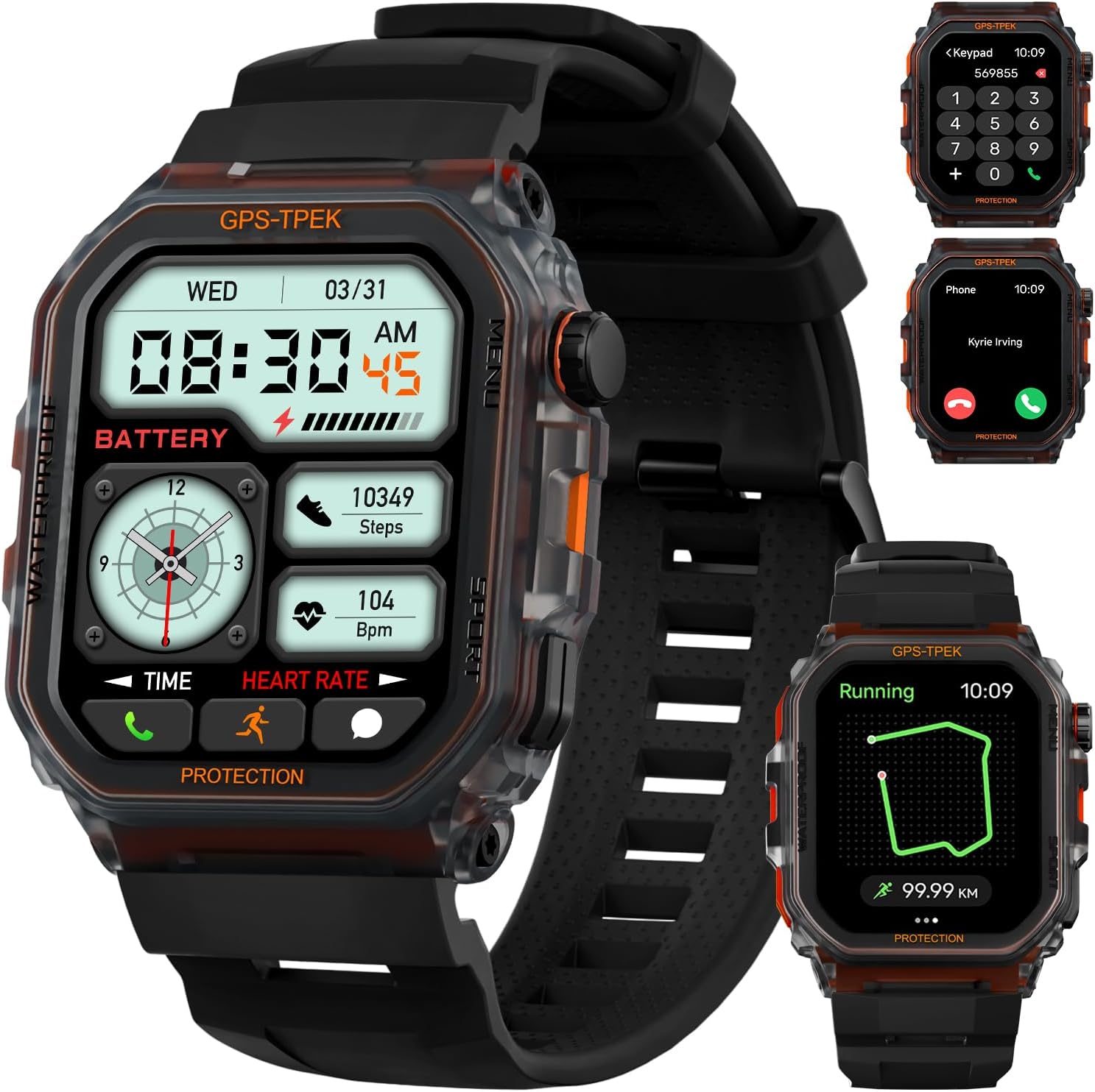 【Military Grade Durability】This robust Military smart watches for men has passed 12 stringent military-grade tests, ensuring it’s ready for any adventure. With heat and cold resistance, it can withstand drops, shocks, scratches, and impacts. It’s waterproof and dustproof, capable of enduring extreme environments like deserts, glaciers, and jungles. Boasting 5 times the durability of standard smart watches for men, it’s the perfect companion for tackling the toughest outdoor challenges.