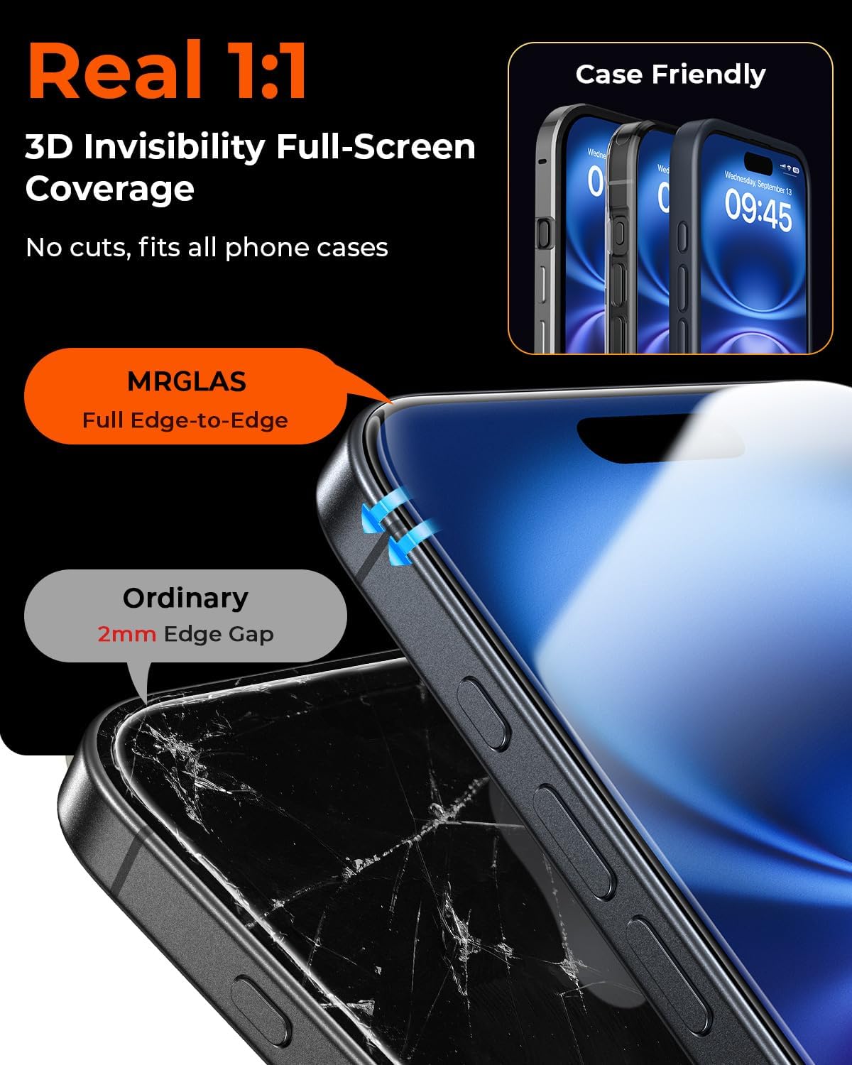 [Stunning Visuals, Unrivaled Clarity, and Touch Experience]: Featuring advanced anti-reflection coatings, GlassMr Z reduces glare by 60% and reflected light by 55%, offering brilliant clarity and color. The latest anti-fingerprint technology keeps your screen smoother than the original iPhone 16 display