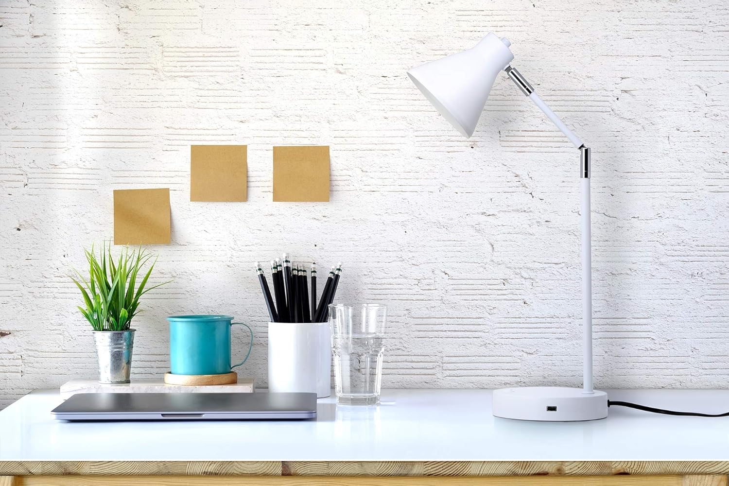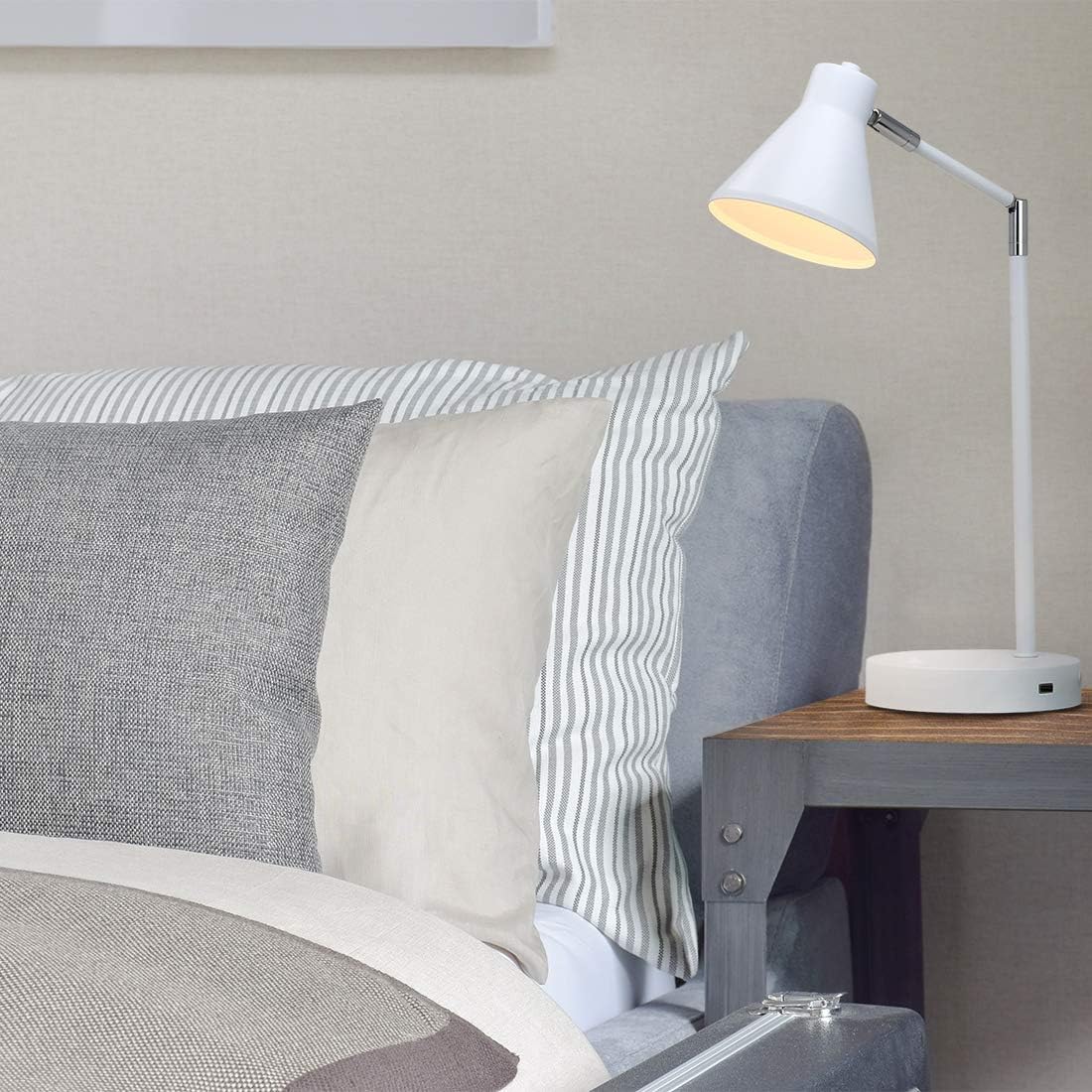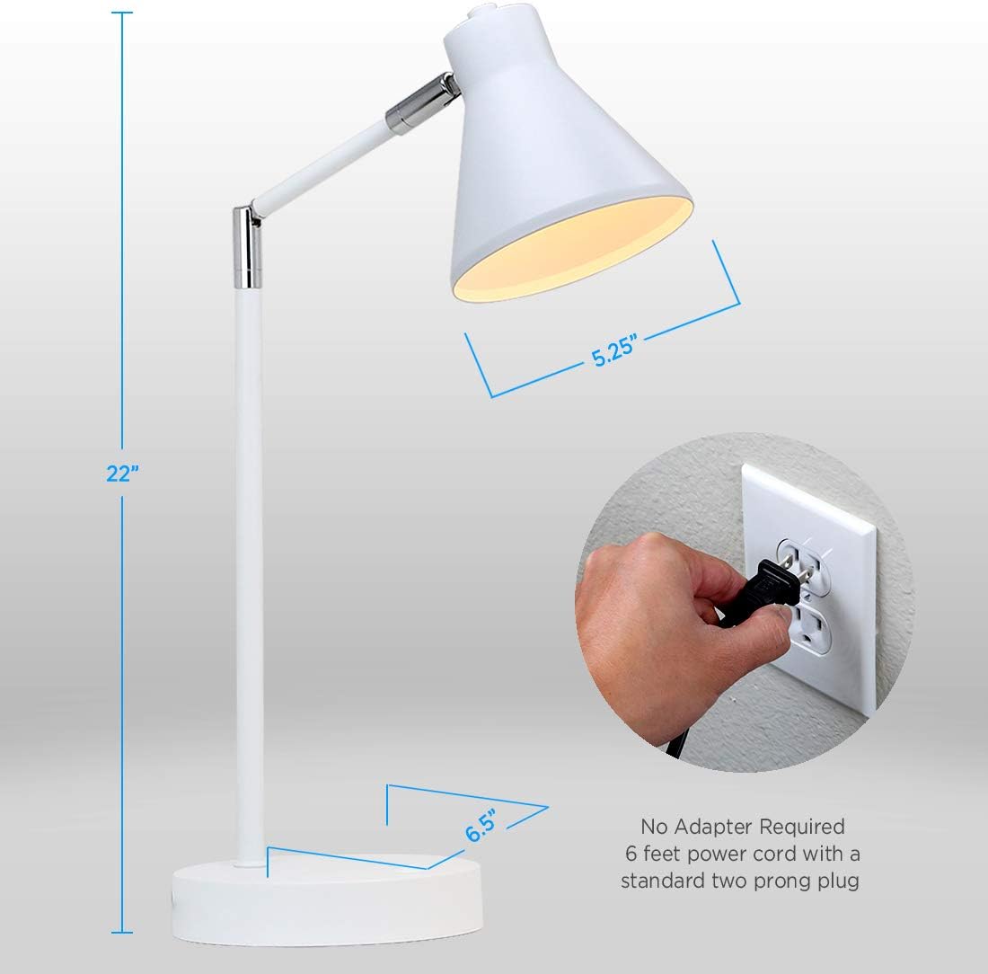 O’Bright LED Desk Lamp with USB Charging Port, 100% Metal, 270 Flexible Swivel Arms, Soft White LED Reading Light (3000K), Bedside/Office/Table Lamp, ETL Listed (White)