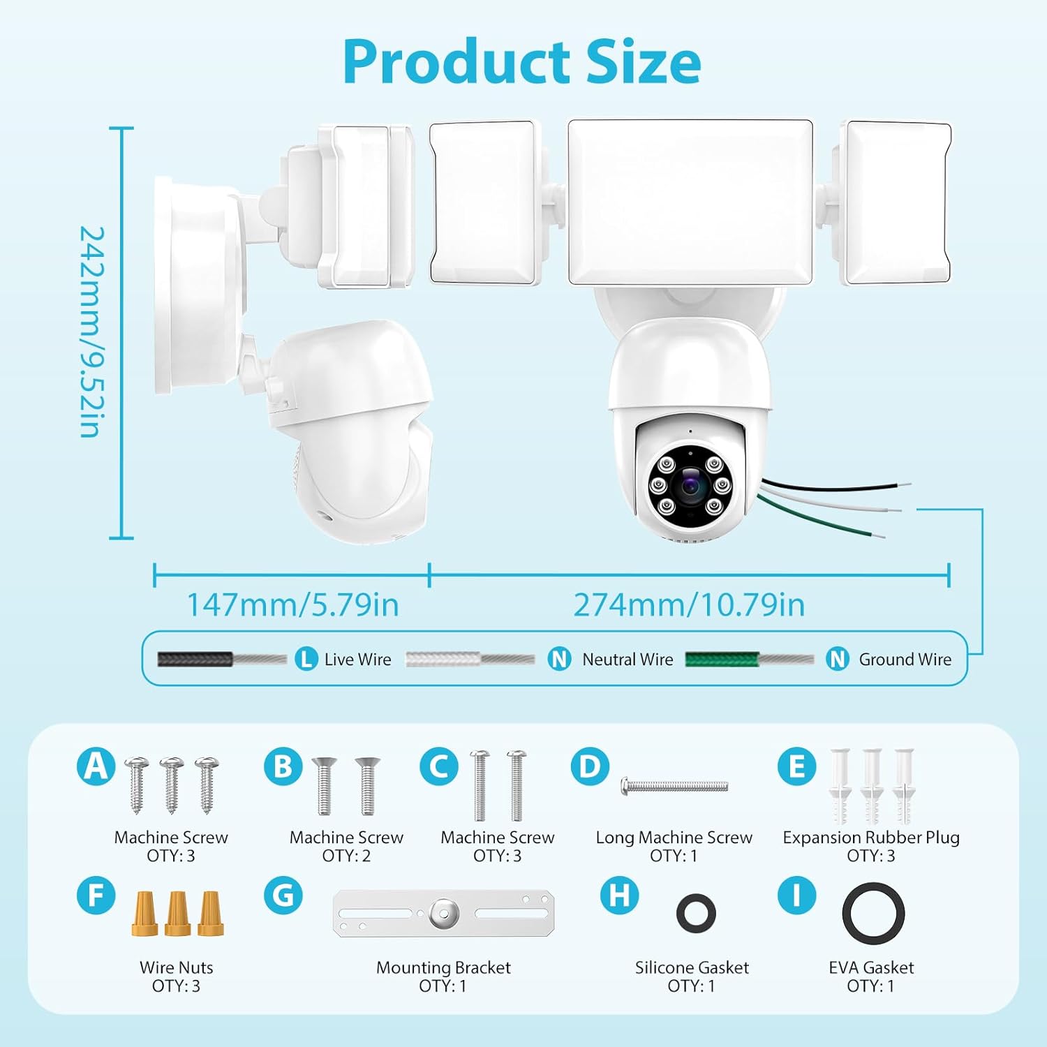 Convenient App Management & Smart Home Integration: You can easily monitor your house through your smartphone via APP, camera flood lights outdoor keep your home safe at all times, which is also compatible with Alexa Show and supports voice control