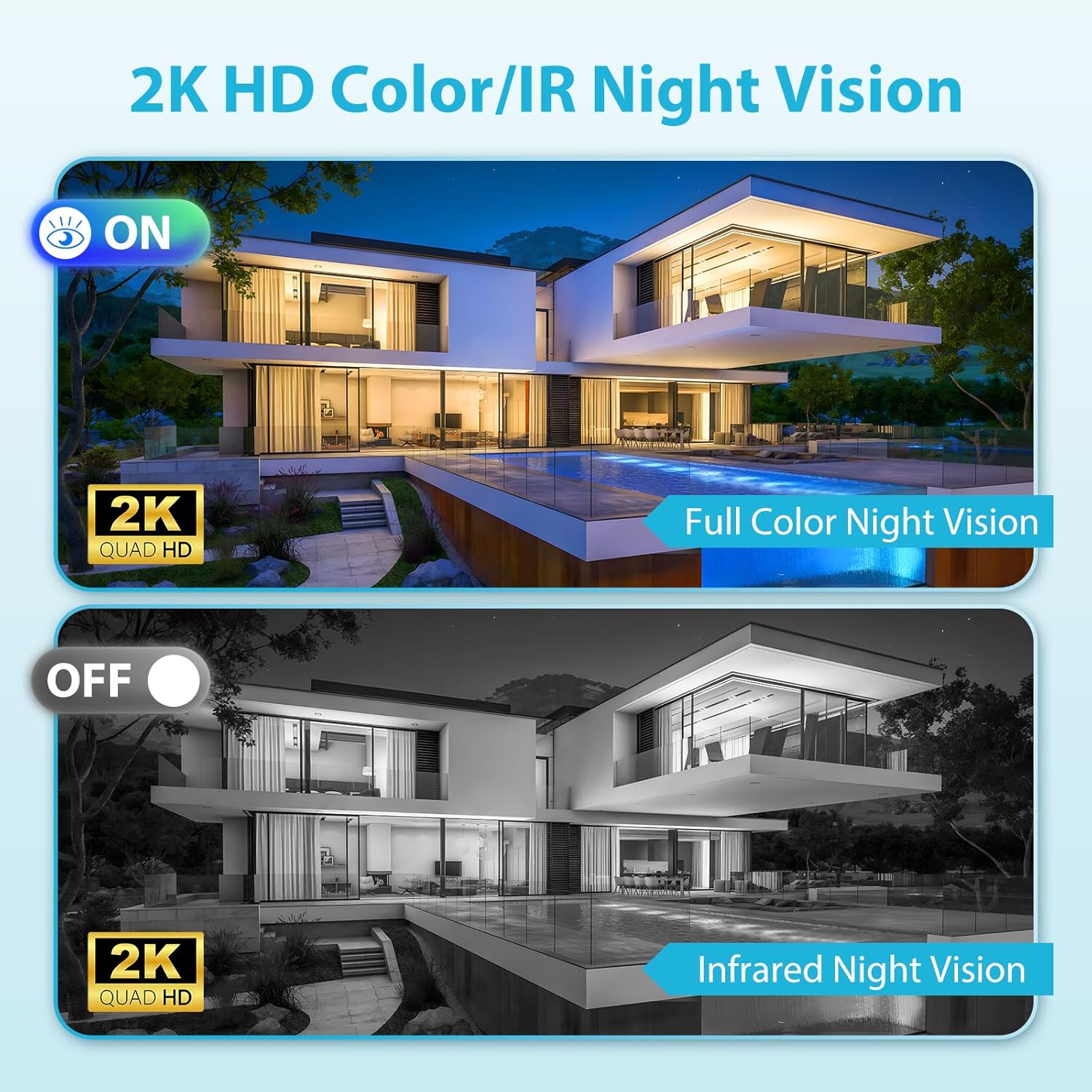 2K QHD Clarity & Enhanced Color Night Vision: Delivering 2K QHD video for incredible clarity and detail. The flood light camera outdoor advanced color night vision ensures vivid, rich recordings even in low light, providing round-the-clock surveillance