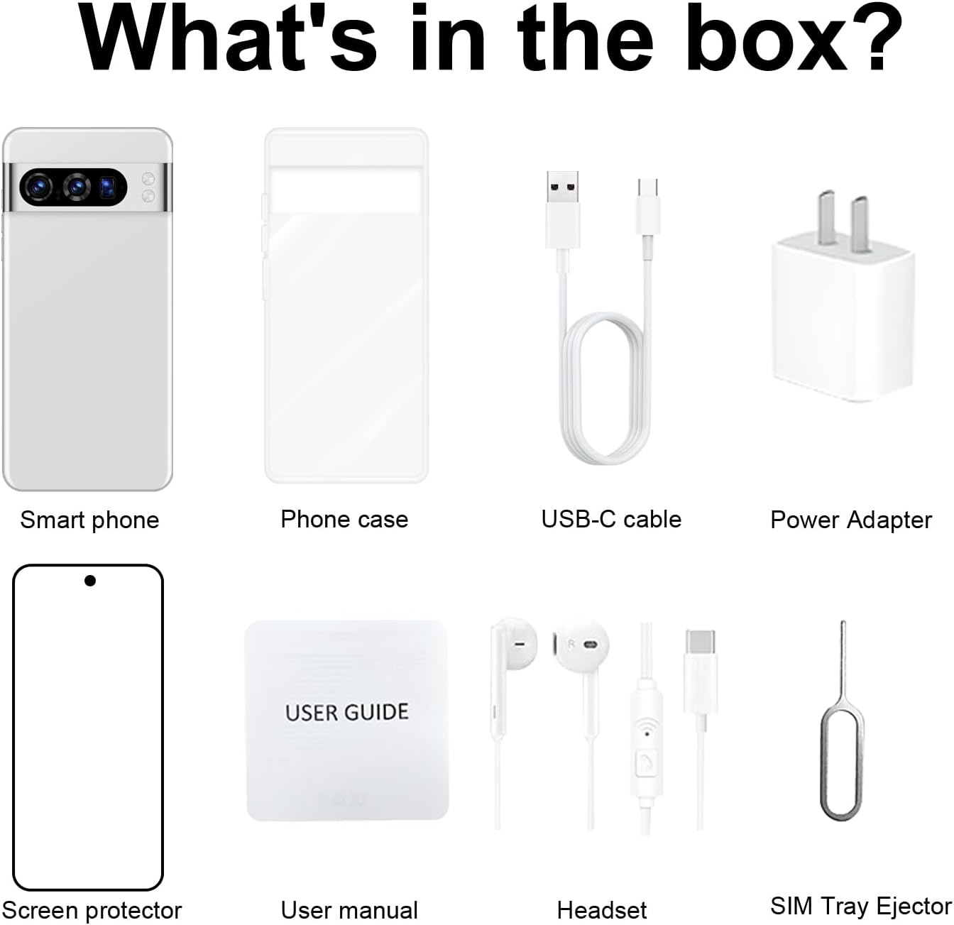 Pixel8 Pro Android Smartphone, 8+256GB+128GB Cell Phone, Unlocked Android Phone, Dual SIM Smart Phones, Long Battery Life 6800mAh, 24MP+50MP Camera, 6.82″ HD Display, US Version, 5G (True white)