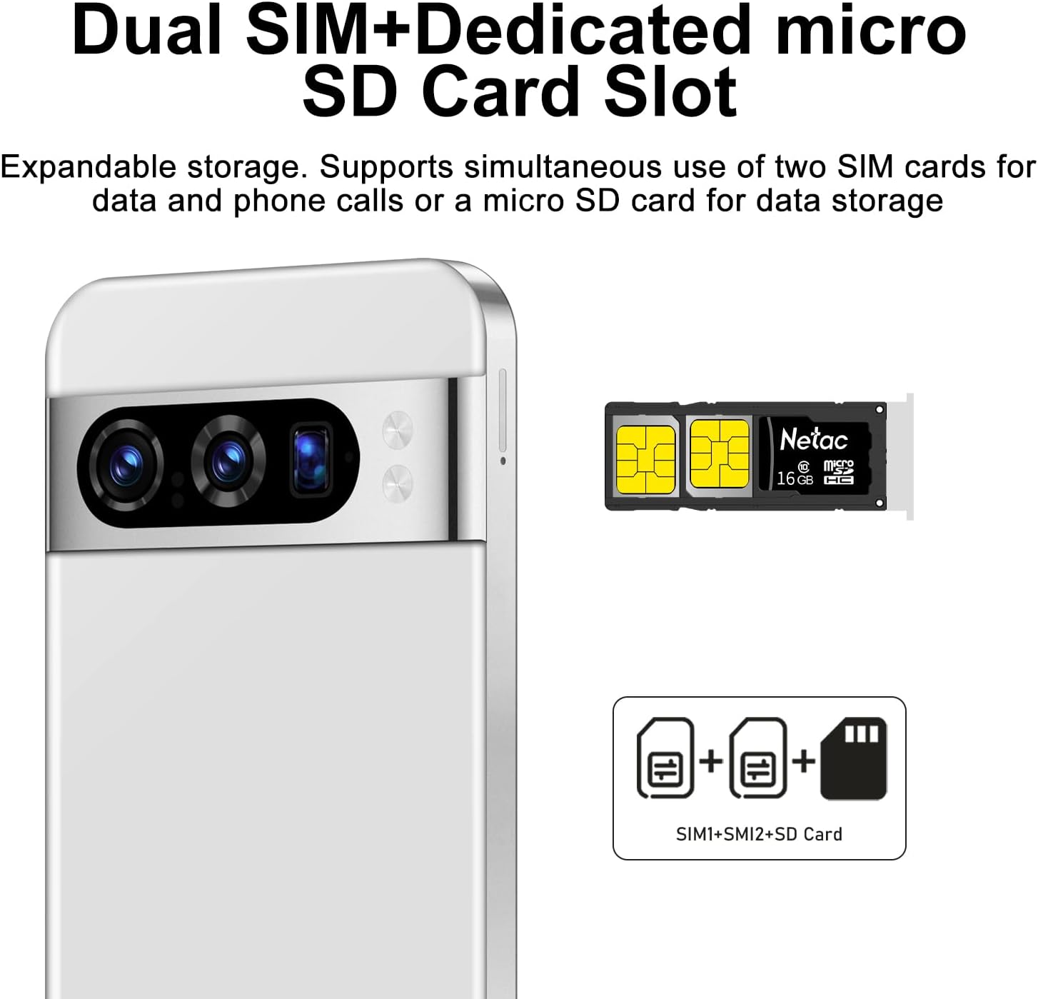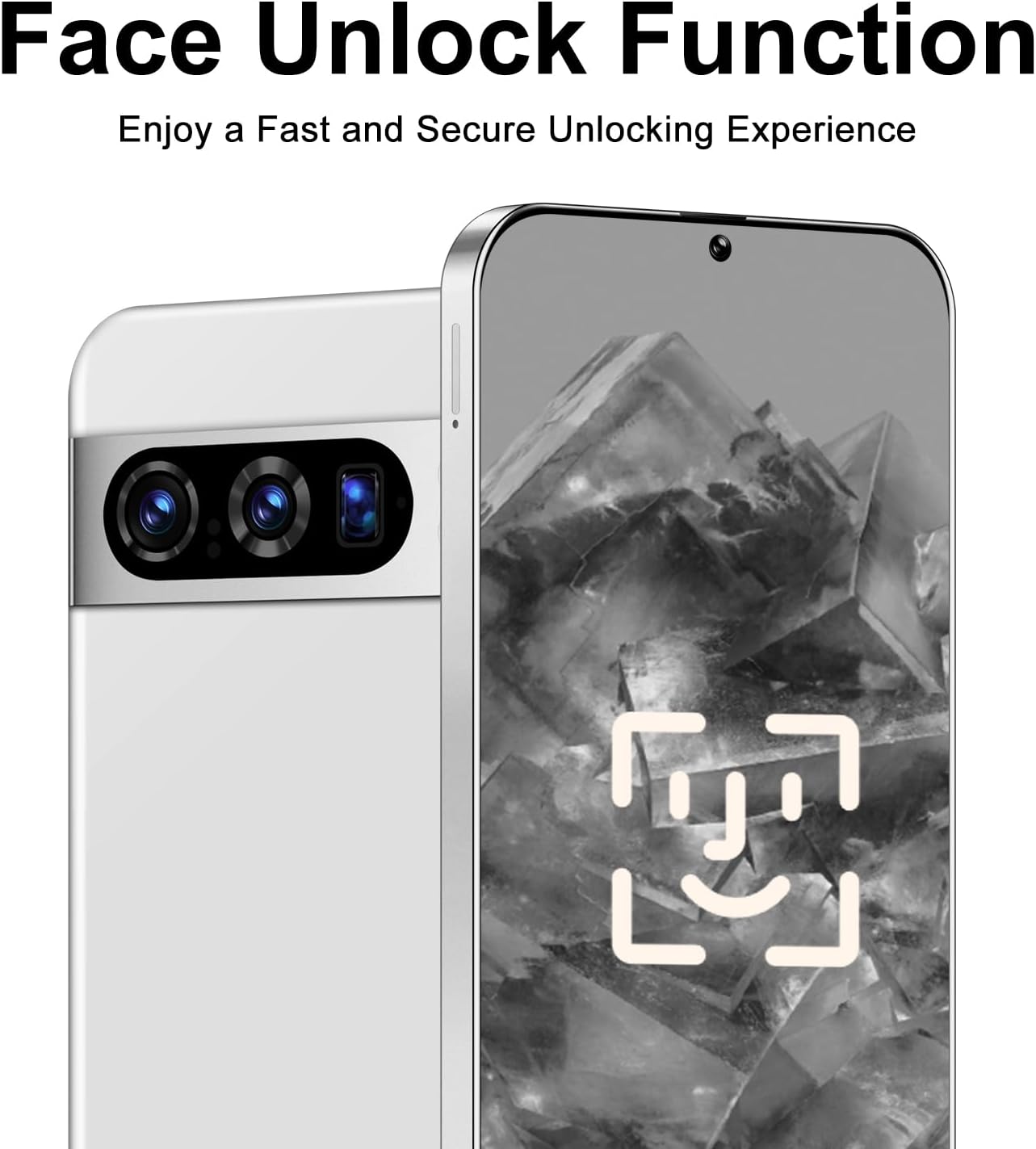 【6.82 HD + Android 13.0】 This is an Android Cell phone with a large screen,6.82”HD+ Display 1440*3040,This unlocked Android 13.0 Pixel8 Pro phone is equipped with a 50MP main camera and a 24MP front facing camera, better recording a beautiful life and showcasing your beauty. And it has facial recognition and screen fingerprint unlocking functions, which effectively protect your privacy.