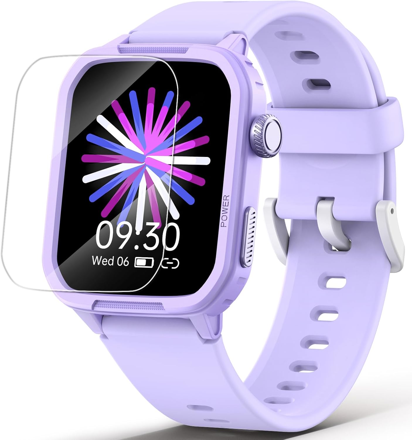 Durable and Safe Kids Watch: The smart watch for kids features a tempered glass screen for enhanced durability, protecting watch from bumps and falls and keeping your child safe from potential scratches.