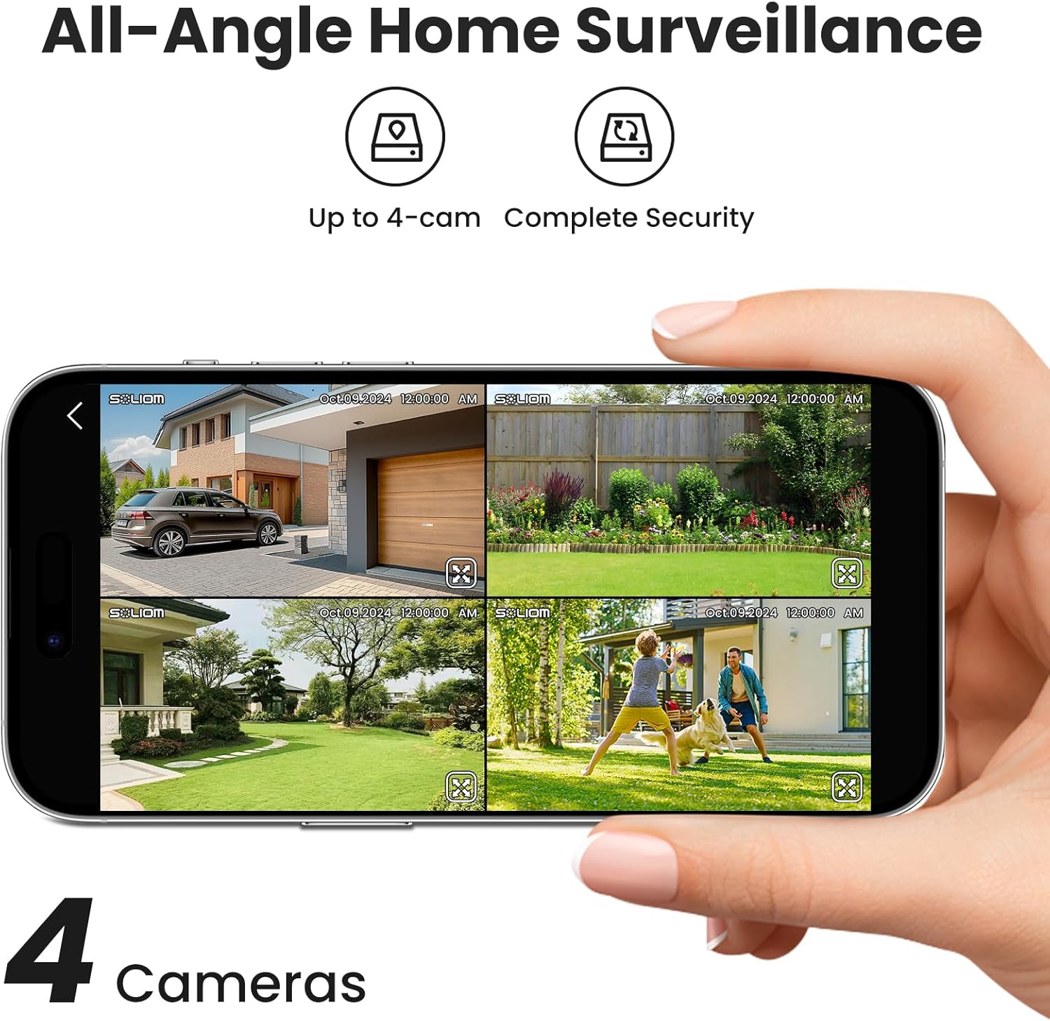 SOLIOM- True 5MP HD Security Cameras Outdoor Wireless, Add-On Camera, Solar Powered, Auto Tracking,Requires Homebase, Homebase Supports Up to 4 Cams