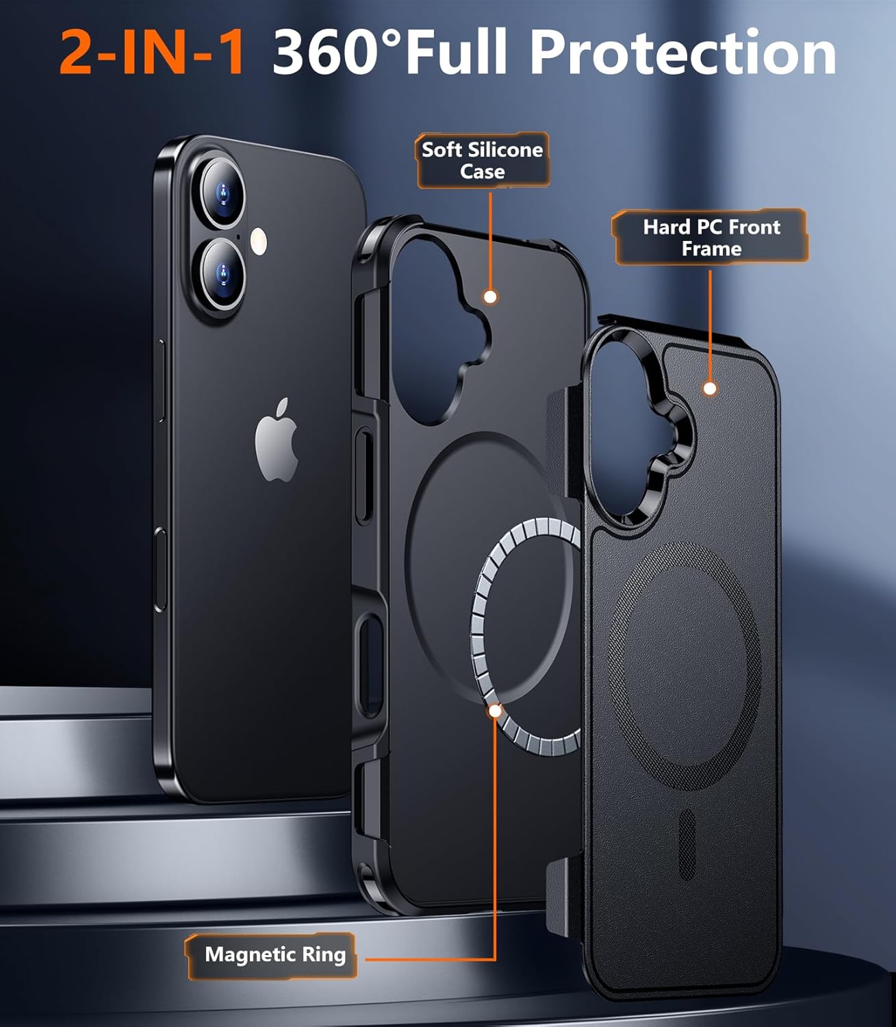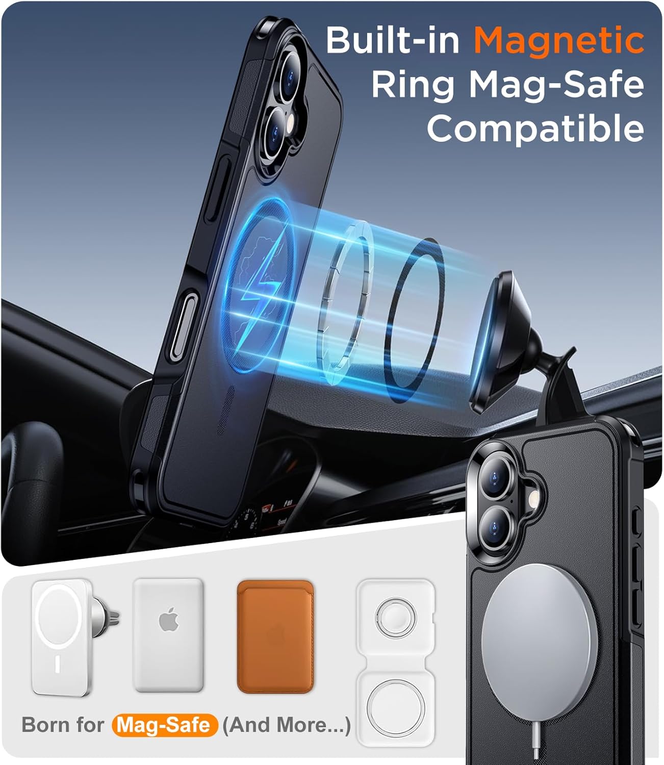【Compatible with MagSafe Accessories】Temdan iPhone 16 magnetic case features a perfectly aligned Super N52 magnetic ring that strengthens the magnetic connection, making wireless charging faster and easier without removing the case