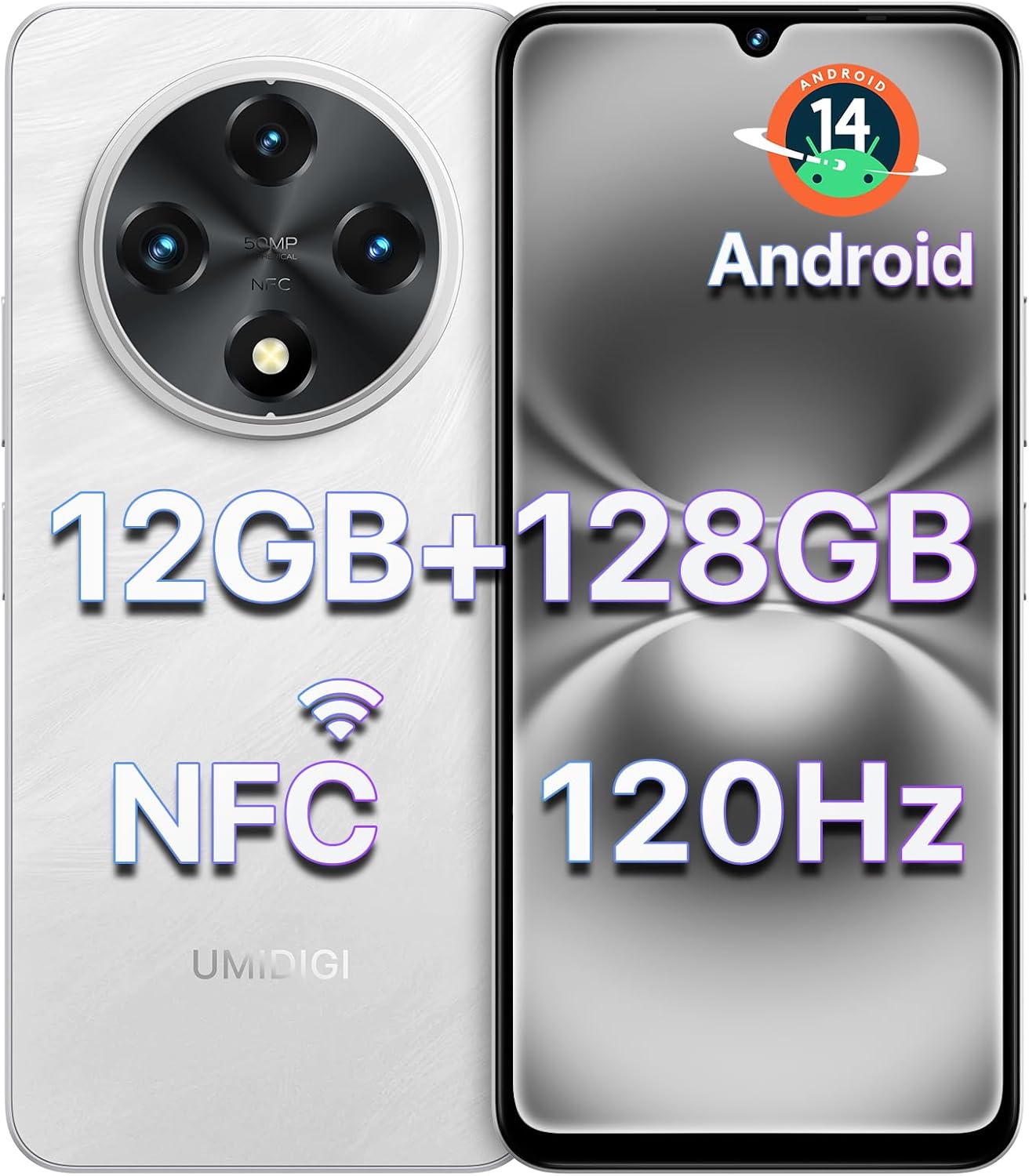 UMIDIGI G100 Unlocked Cell Phone Android 14, 6.9″ HD+ 120Hz,Octa-core 12GB +128GB Expand 1TB,GPS Unlocked Smartphone,6000mAh,50MP Triple Camera,Dual 4G LTE Phone, NFC,AI Face Unlock,OTG,White