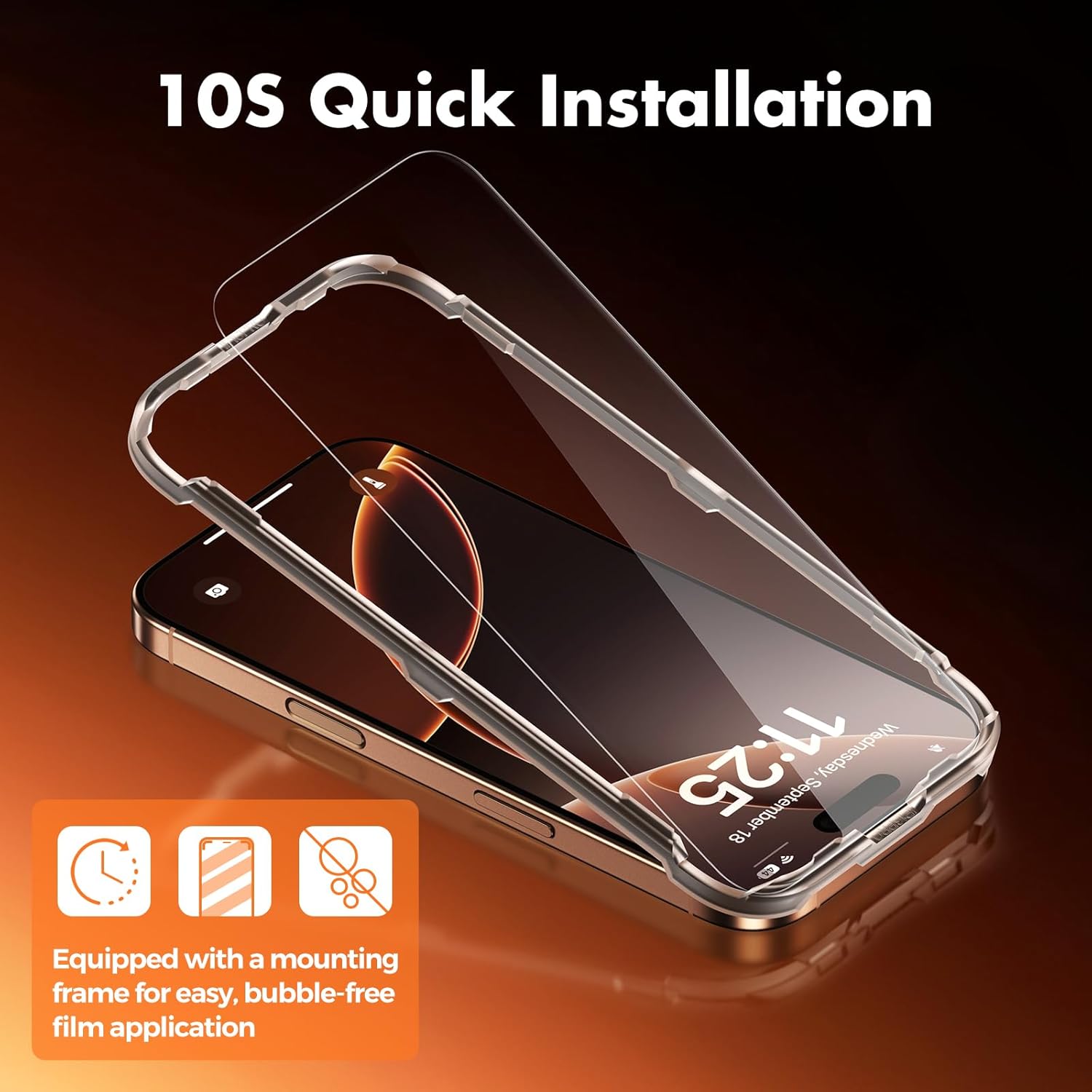 Super-Easy Installation: This iPhone 16 Pro screen protector kit includes an installation frame, alcohol wipes, dust removal stickers and absorbers, a microfiber cloth, and a guide. Perfect alignment is effortless, even for beginners.