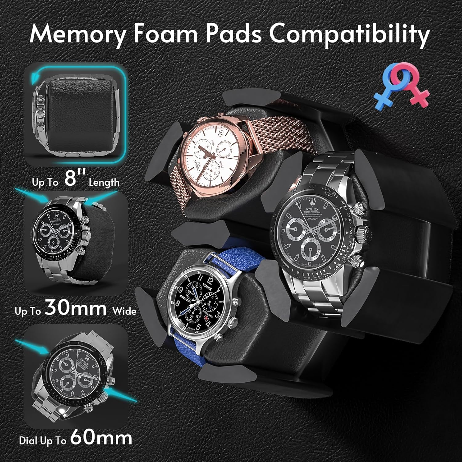 Watch Winder, Multi-Slots Automatic Watch Winders with Serenity Blue Backlight and Memory Foam Pad, 4 Modes (Adapter Not Included)