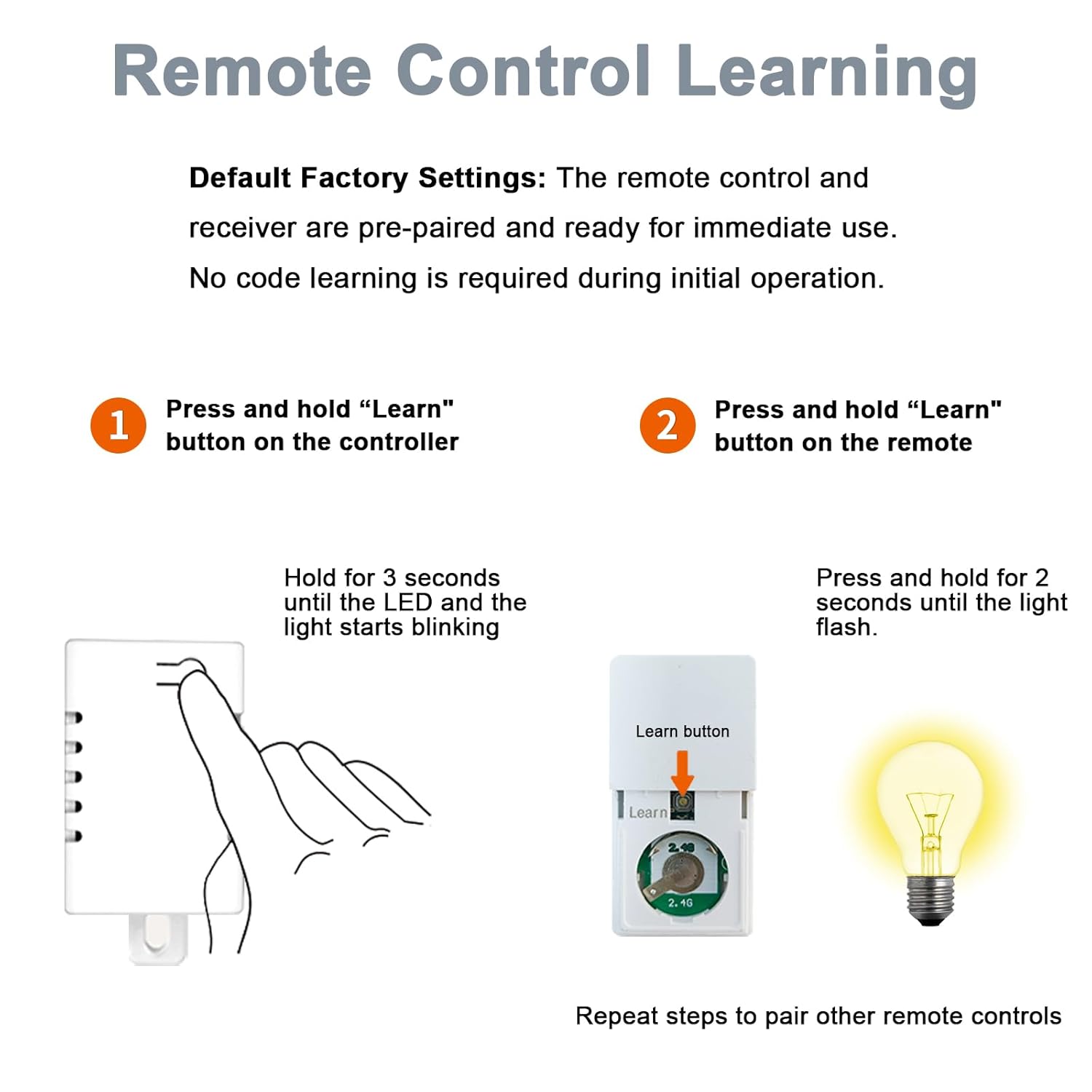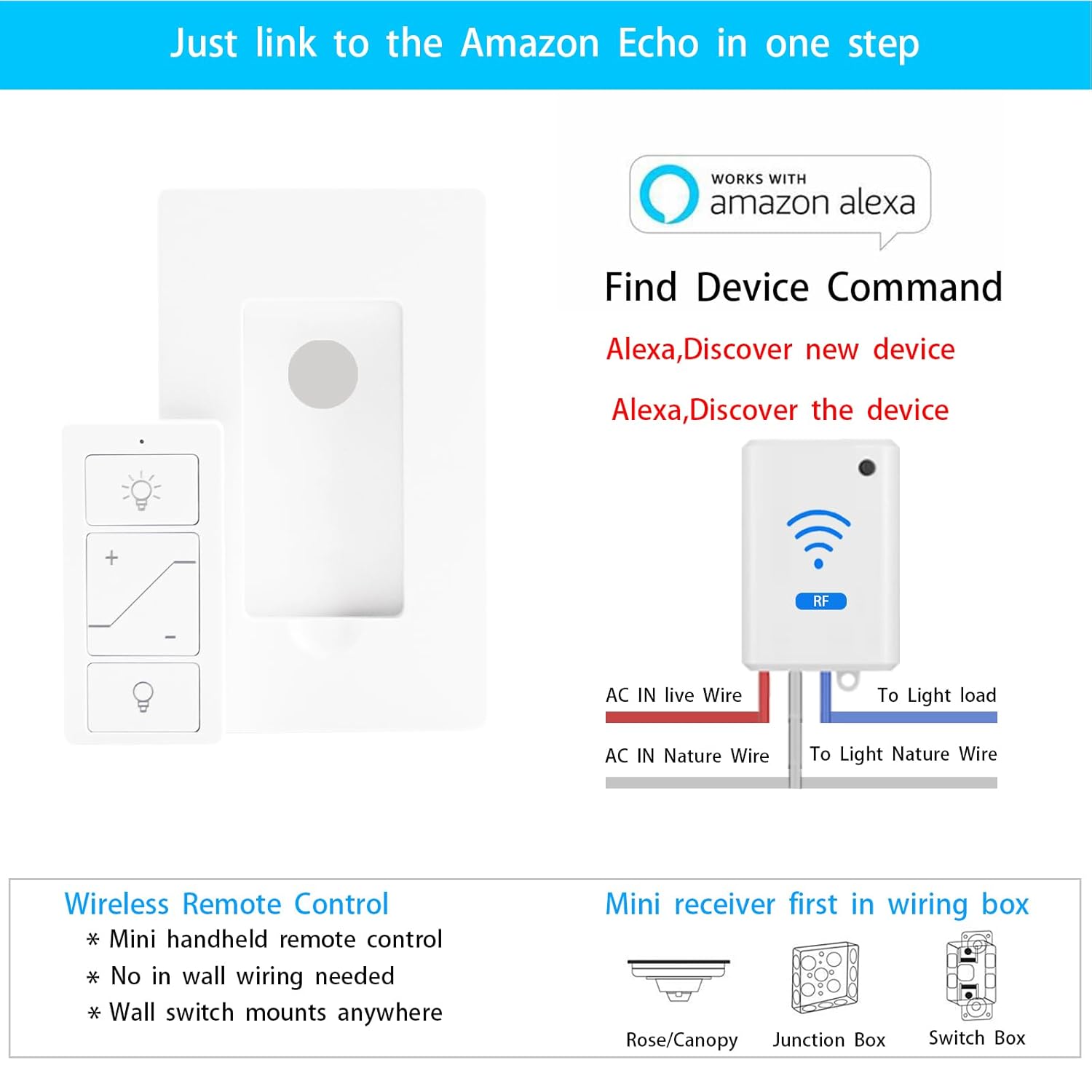Wireless Light Switch and Receiver, Remote Light Switch Compatible with Alexa, Smart Wireless Dimmer Light Switch, Wall Switch Lighting Fixture for Ceiling Lights, Fans, Lamps