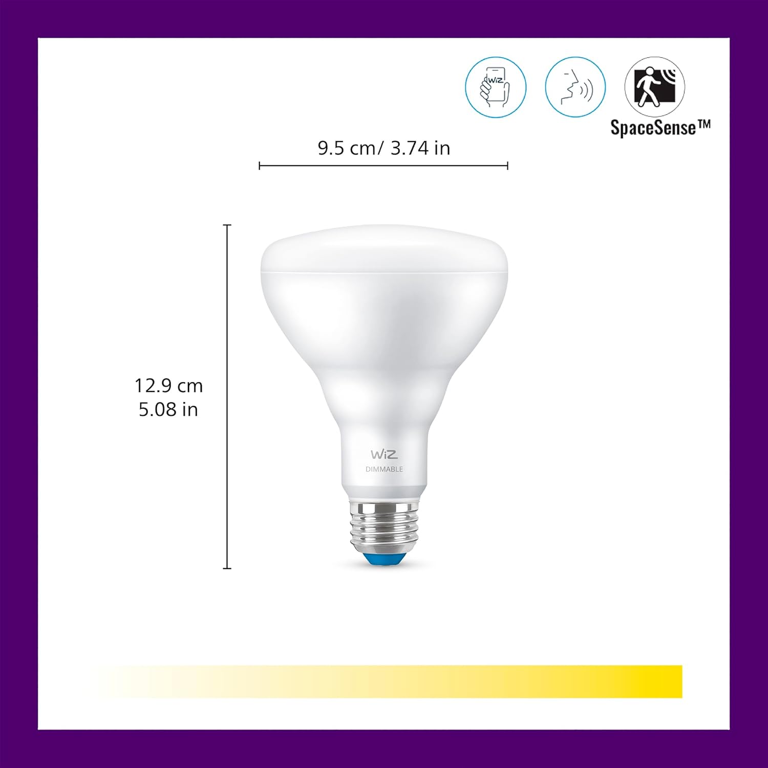 WiZ 65W BR30 Soft White LED Smart Bulb – Pack of 1 – E26- Indoor – Connects to Your Existing Wi-Fi – Control with Voice or App + Activate with Motion – Matter Compatible